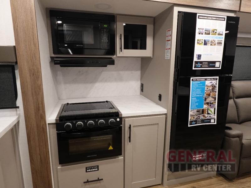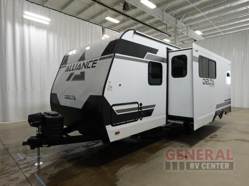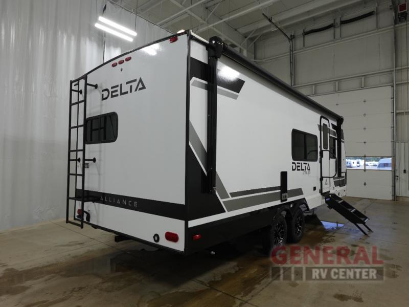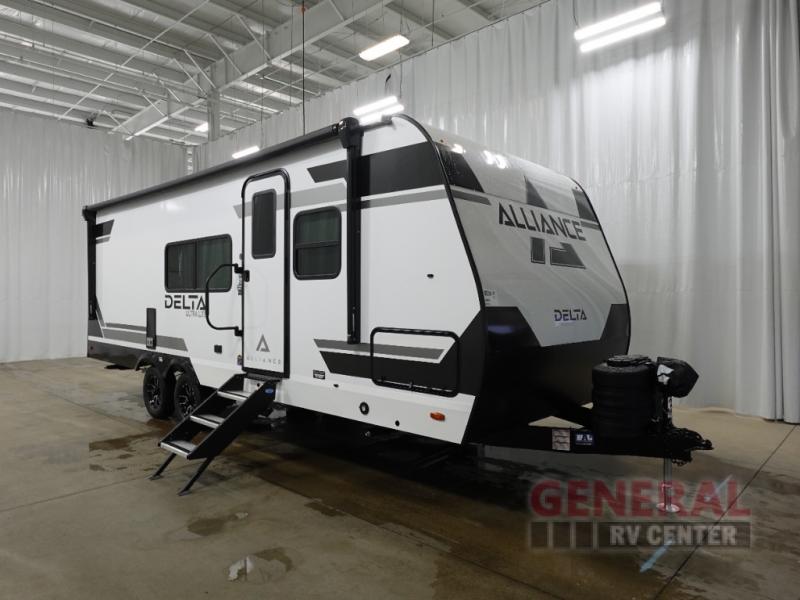 The Delta Ultra Lite travel trailers by Alliance RV are perfect for those looking for a lighter tow weight! The fully functional oversized atrium windows will let more natural light in, and the carpet free interior will be appreciated after a weekend at the lake. There are also magnet catches on all cabinets, soft close cabinet doors, and a kitchen toe kick with LED accent lighting. The exterior includes multiple temperature controlled spray ports, exterior awning controls, and Goodyear Endurance tires. Start a new adventure today in a Delta Ultra Lite travel trailer!