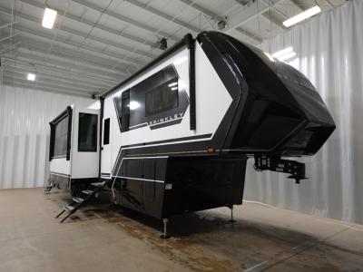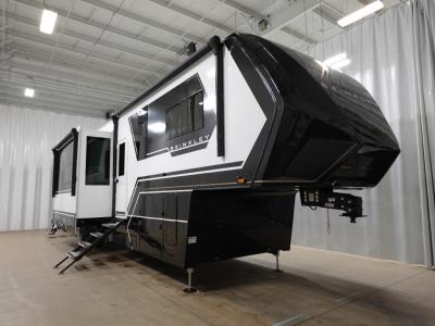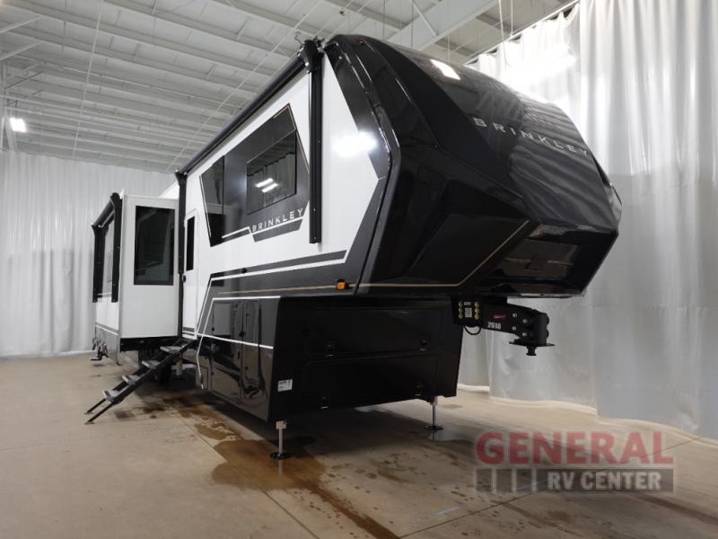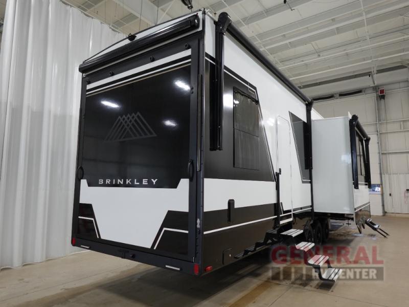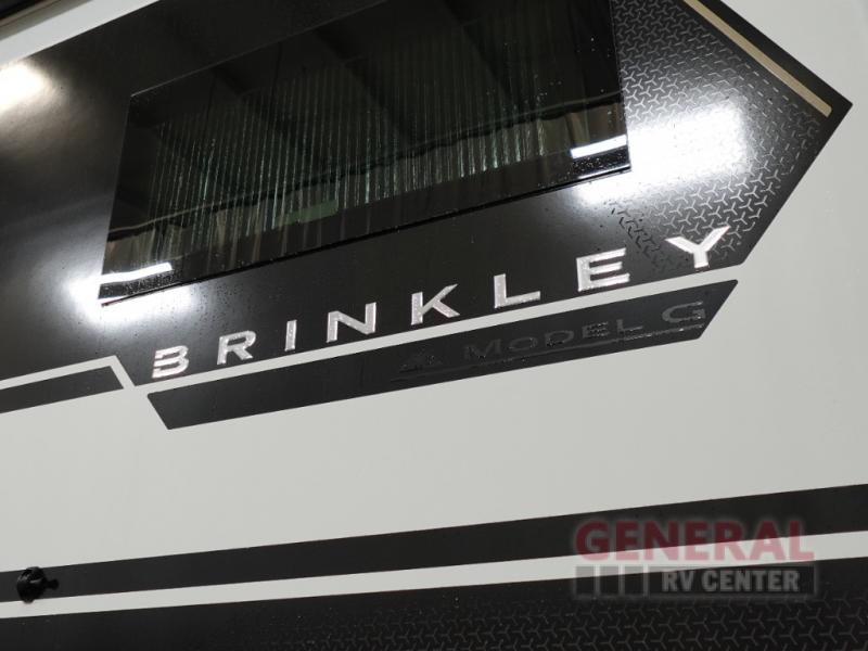 With any Model G toy hauler fifth wheel by Brinkley you will enjoy luxurious amenities, tons of storage space, and innovative features that have been developed and tested in the real world. Durable construction includes an industry leading PDI process, an industry best insulation package, and reinforced and walkable slide roofs. Some of the exterior features you'll find are a 3-way pass-through with a multi-functional flip-up bulkhead wall, under I-beam storage, a MAX-Vision reverse lighting system, and a low-maintenance roof to name a few. A Rockford Fosgate audio system comes standard, along with a OneControl app system that lets you control your fifth wheel's functions right from your mobile device. You will find the solar system with a designated storage area to be ultra convenient, plus there is a FlexPower 5500 with a dual fuel inverter generator for all your power needs. Head inside to find a residential interior with Brinkley's CraftSense wood trim construction, floating entrance steps, integrated window screens and insulated blackout blinds, and residential solid surface countertops plus backsplash. You will also enjoy the neon shower lighting and recessed medicine cabinets in the bath, plus motion activated LED bed lights and dual bedside outlets in the bedroom. Choose a Model G toy hauler fifth wheel to experience all the luxury it has to offer!