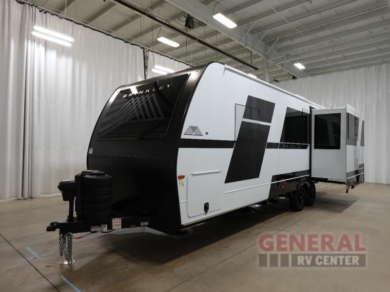 The lightweight Model I travel trailer by Brinkley is the perfect choice for those looking for an easy tow and at-home comforts! There is a drop-frame chassis, high-performance Road Armor suspension equalizer system, and Demco EZ Latch trailer coupler that automatically latches when dropped onto a hitch ball without the need of a safety pin. Additional exterior features include square Euro frameless windows, automotive-grade paint, full-width LED strip lighting in the pass-thru, and a pet & property security campside tie-down to keep your gear and furry friends safe. Inside, you'll be wowed by Brinkley's CraftSense wood trim construction, residential solid surface kitchen countertops, dimmable bedroom lights, and marine-grade neon LED shower lighting to name a few stand-out features!