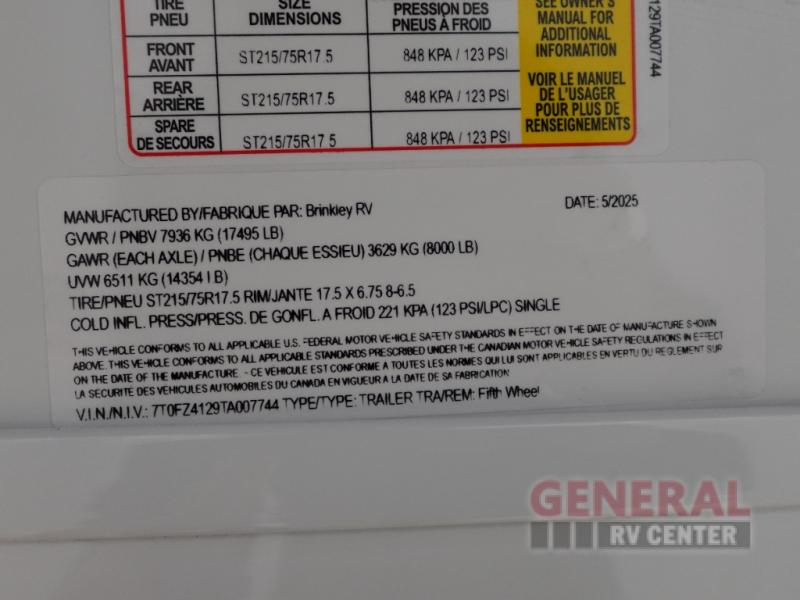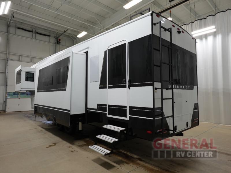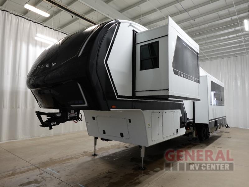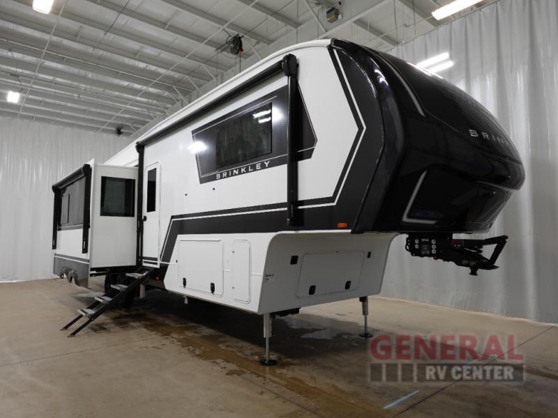 The Brinkley mid-profile Model Z fifth wheels bring you clean lines and an upscale look with plenty of style and exciting new features like the industry first brass plumbing connections. These units also feature an automotive grade front cap, plenty of exterior storage, dual exterior hot and cold showers, and wide stance leveling jacks for easy set up. Residential frameless windows provide a clean look and beautiful views, and ample electrical outlets and 6 USB/USB-C outlets allow all of your electronics and appliances to easily be used and charged.