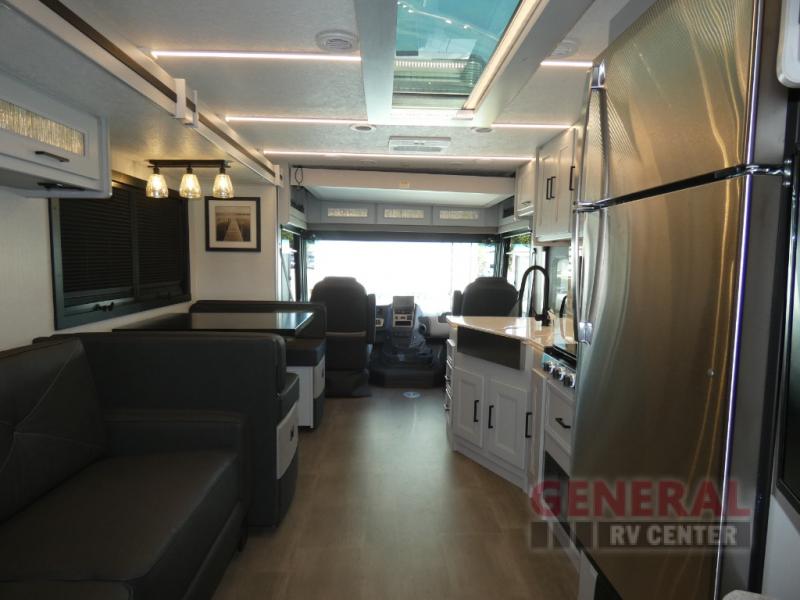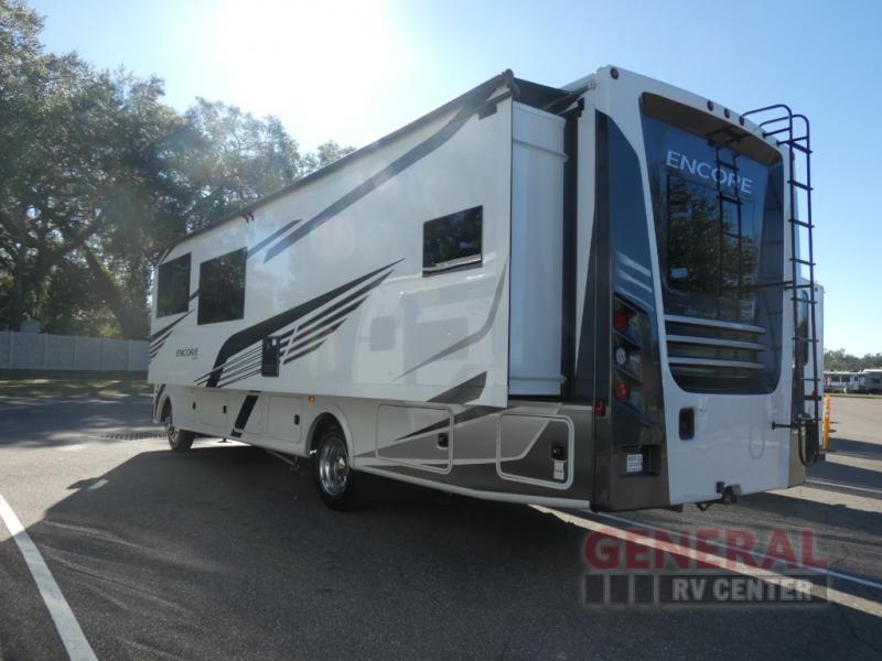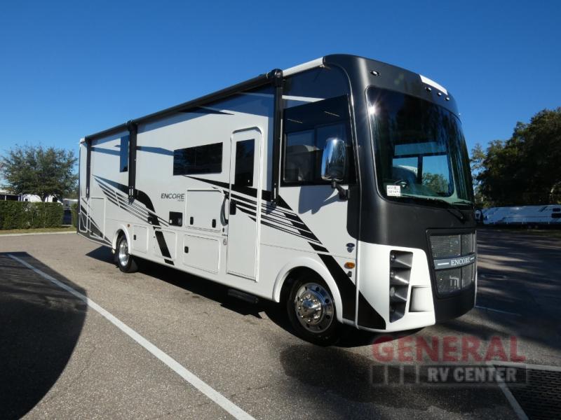 Each one of these Coachmen RV Encore Class A gas motorhomes have been engineered for maximum comfort! A Ford F53 chassis holds them together and a 7.3L V8 engine powers them to each destination. Both the crowned, laminated fiberglass roof and the high gloss gelcoat sidewalls come with Azdel superlite composite to prevent your unit from rotting away. Automatic leveling jacks make for an easy and quick set up when you arrive. You will appreciate having an exterior propane hookup and the pass-through full basement storage area has plenty of space for all of your outdoor gear, plus the radius trunk doors come with slam latch. With high definition back up and side cameras, you can travel with peace of mind. Come find your favorite one today!
