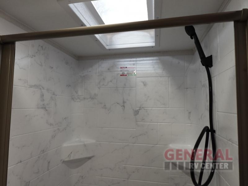 With any Freedom Express Select travel trailer by Coachmen you will find an alumicage construction and two-step vacuum bonded and pinch rolled sidewalls with Azdel interior and exterior for a trailer made to last. These Select value models come standard with a Bluetooth interior speaker, night shades, and wear-resistant vinyl flooring throughout. You will appreciate the power tongue jack, as well as the Dicor Tufflex PVC roof and heated and enclosed underbelly to help with protection and climate control. A GE 15K BTU roof A/C will keep you comfortable, and the suburban tankless water heater will provide endless hot showers!
