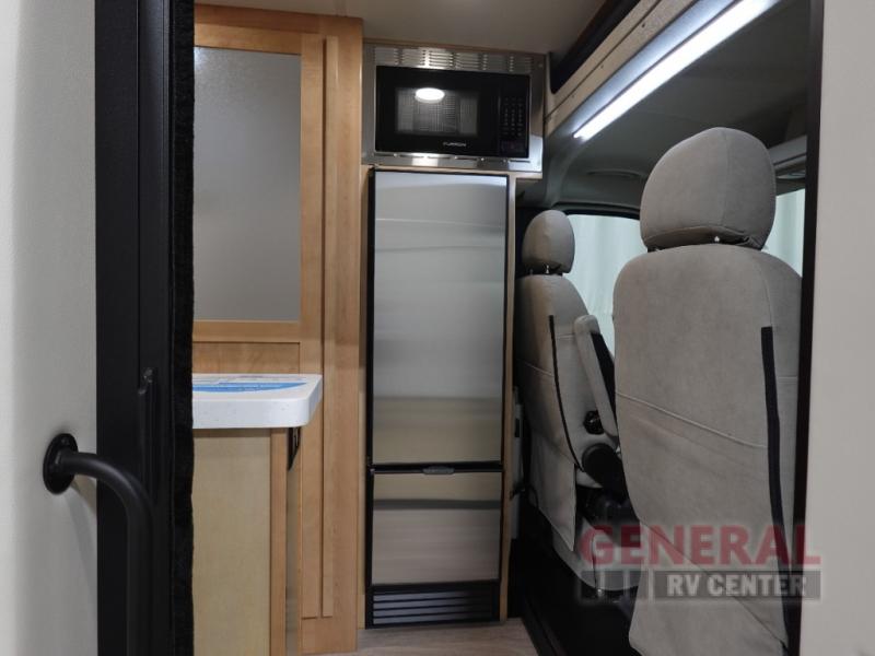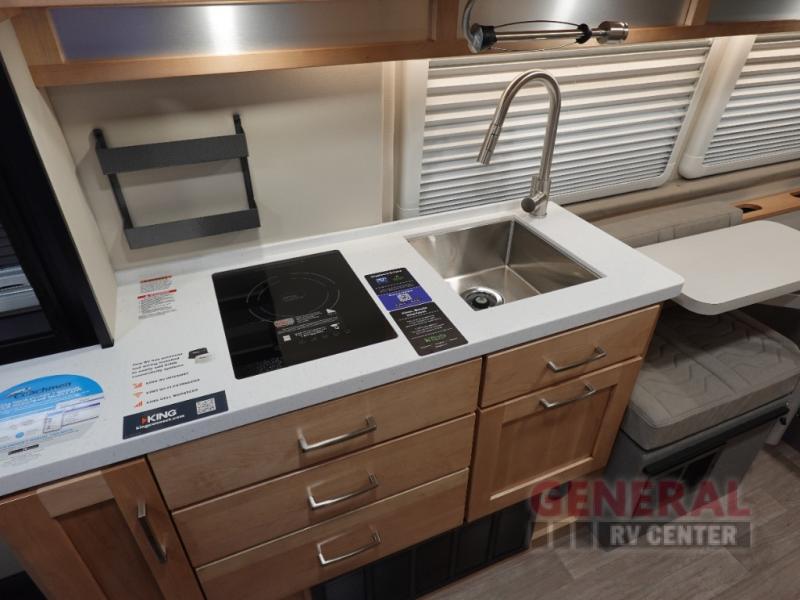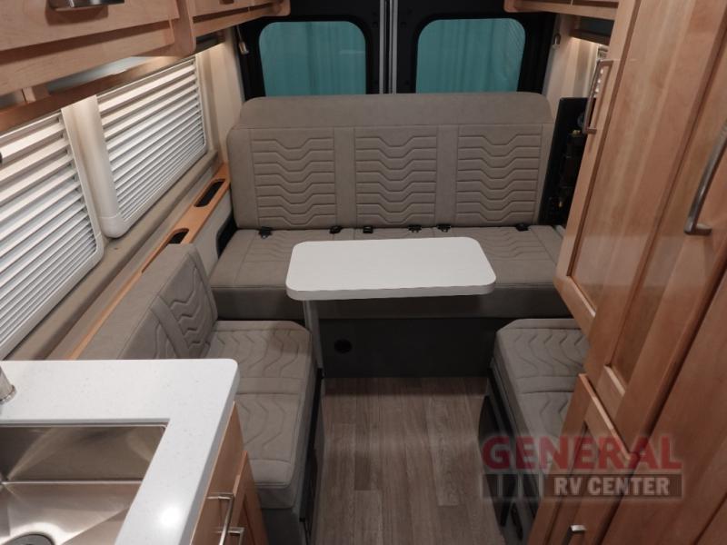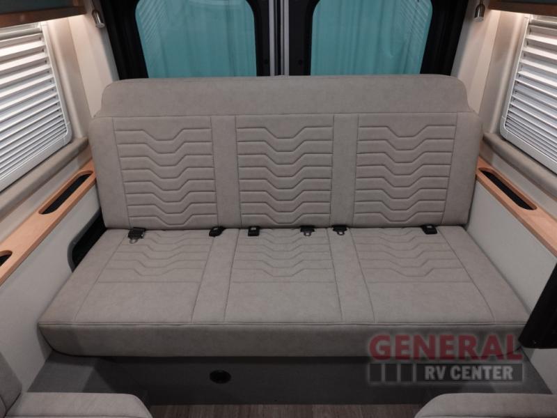 Grab your honey and head to your favorite camping spot in this cozy camper van. Once you park for the day, you can swivel the captain's seats around and enjoy coffee at the swivel table. Lunch can be made on the induction cooktop, and the cold ingredients can go back in the 7.3 cu. ft. refrigerator. The convenient wet bath allows you to freshen up after a hike, and the rear lay-flat power sofa will provide comfortable sleeping space when you're ready to turn in for the night. There are also two jump seats and a swivel table if you want to say up and play a game of cards!