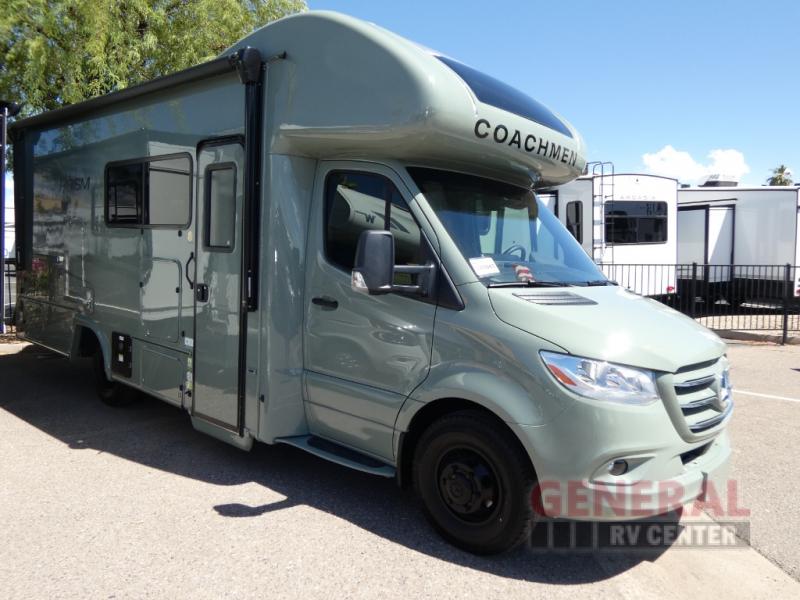 There is much to love about each one of these Coachmen Prism Select Class C diesel motorhomes, starting with the Mercedes-Benz chassis that is sure to get you where you wish to go. You will also appreciate the CrossFlex roof membrane, Azdel "SuperLite" substrate with aluminum framing to resist dry rot, and the 2" vacuum-bond laminated sidewalls for added durability. A 3.6kW LP generator will help keep you powered up, and a tankless water heater will bring added convenience when it's time to freshen up. You will also love the two-tone interior cabinetry inside, along with thermofoil countertops, pull-down window shades, and a coach TV for entertainment!