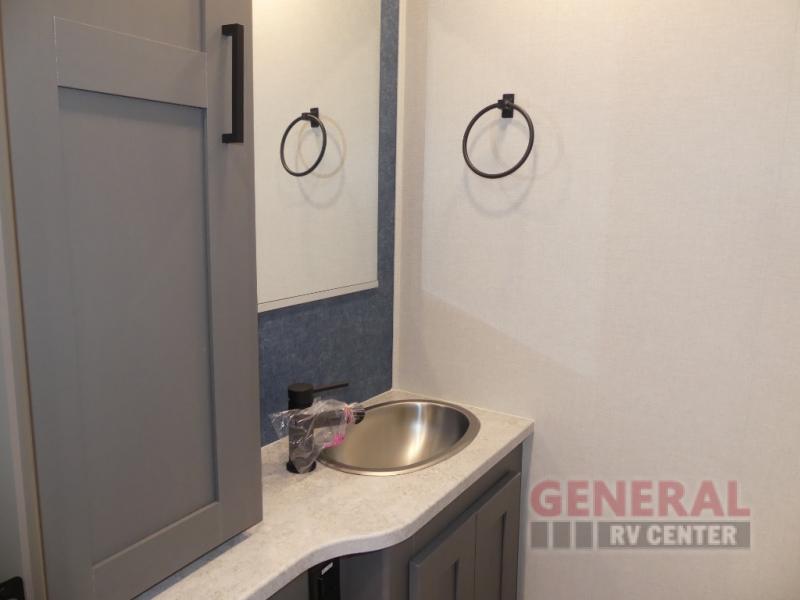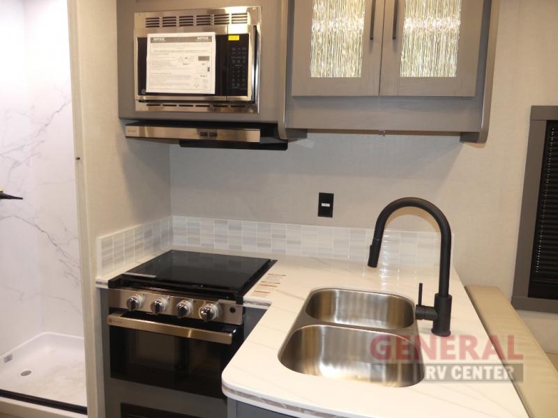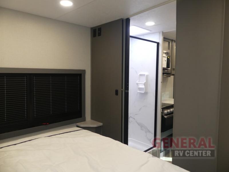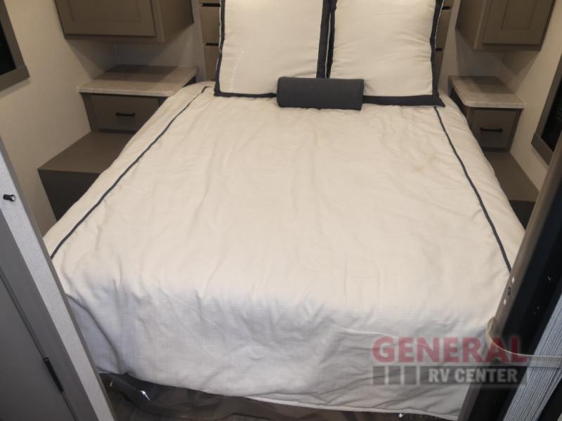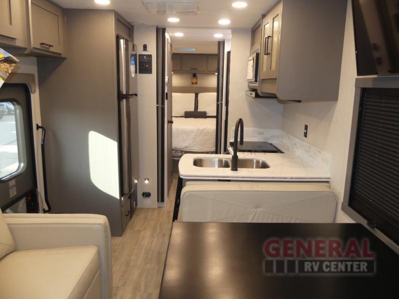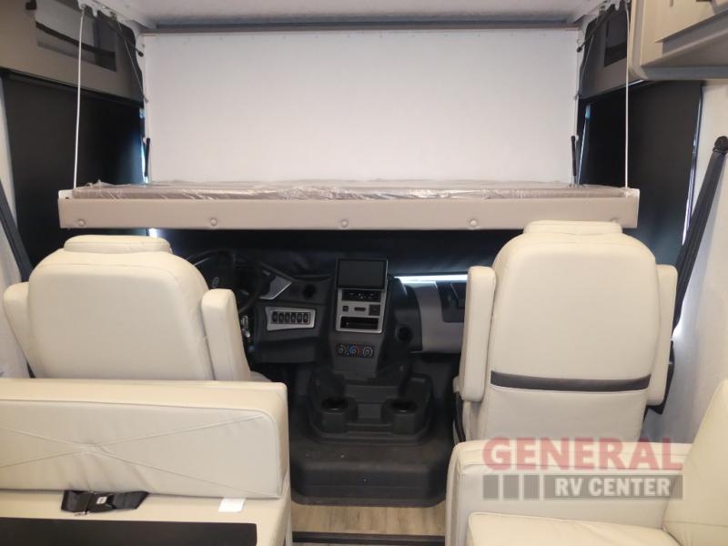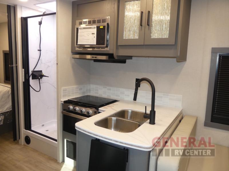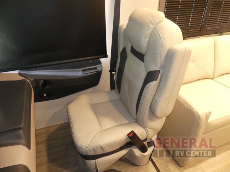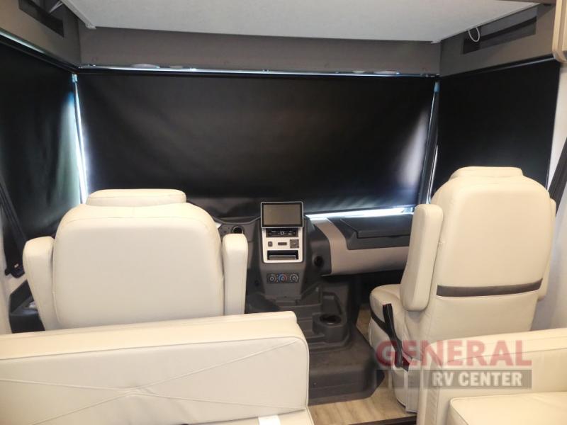 Live your best life on the road with this motorhome! The rear private bedroom has a 60" x 74" queen bed to lay your head on at night with wardrobes on either side of it for your clothes. A separated bathroom makes it easy for one person to freshen up in the 24" x 32" shower while another uses the private toilet and sink. Enjoy home cooked meals while out on the road with the stainless steel three burner cooktop, the 12V stainless steel double door 10 cu. ft. refrigerator, and even the stainless steel microwave oven. Eat your meals, play card games, and even transform the 42" x 70" booth dinette into an extra sleeping space. The 63" sofa has storage below for an extra blanket or board games. If you need to get some work done while you're away then you will appreciate the computer work station with 12V, 110V, and USB outlets in front of the passenger chair!