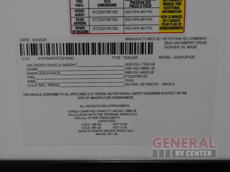 Dutchmen Astoria travel trailer 2913FK highlights: