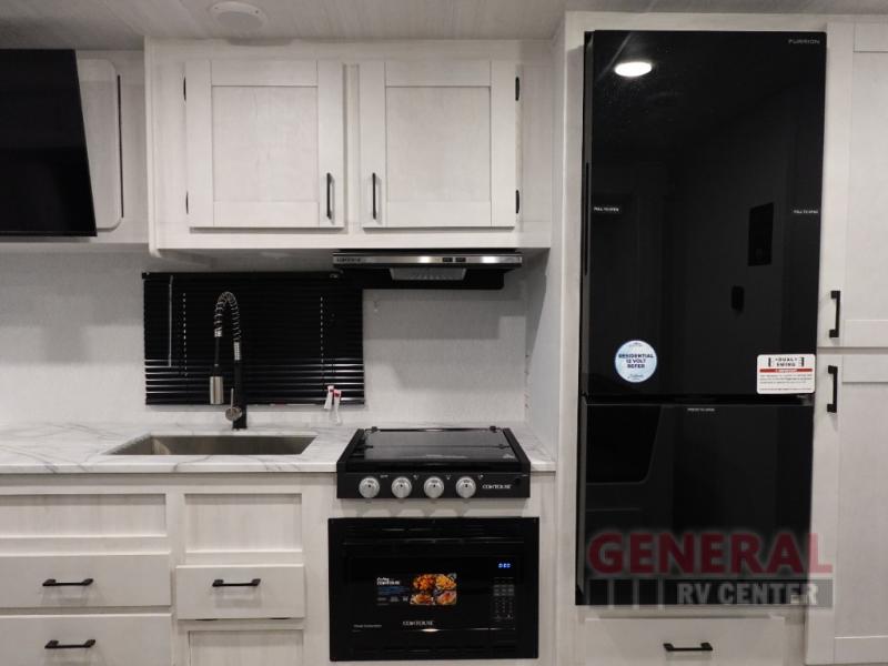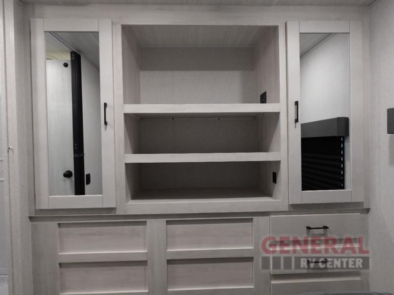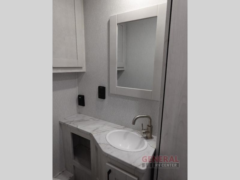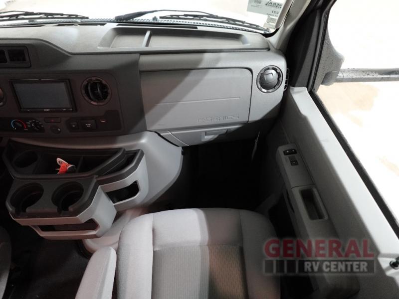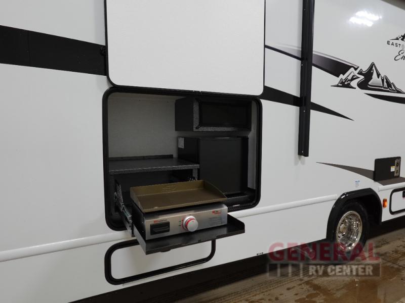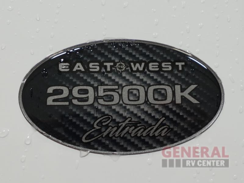 With any Entrada Class C gas motorhome from EAST TO WEST, the construction consists of a one-piece painted fiberglass front cap, a TPO roof membrane, and 2" Azdel composite sidewalls for added durability. There are rotocast exterior storage compartments with slam latch doors, along with an exterior LP Quick Connect, and a power awning with an LED light strip. You will also find rear and sideview cameras to help make maneuvering and parking your RV easier than ever. Inside, you'll feel right at home with soft close hardwood cabinet doors and drawers, a high-altitude tankless water heater, plus a 12V smart TV and USB ports to keep your electronics charged up!