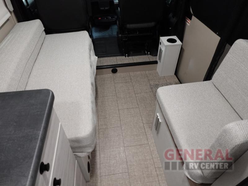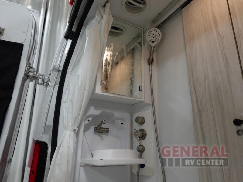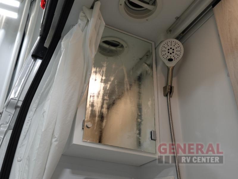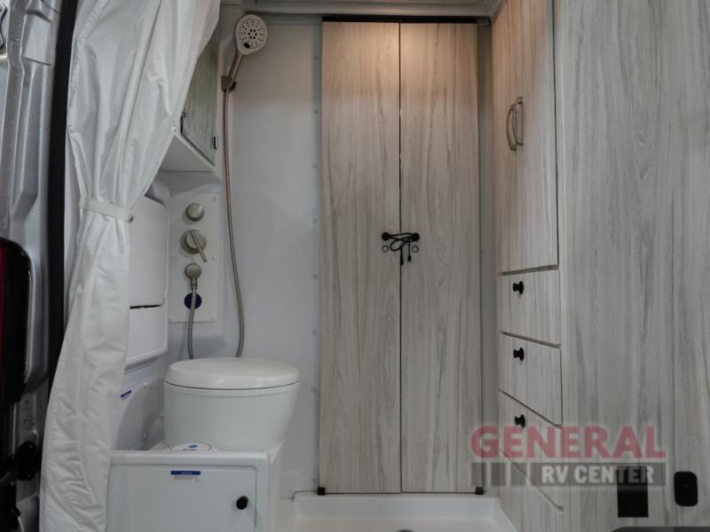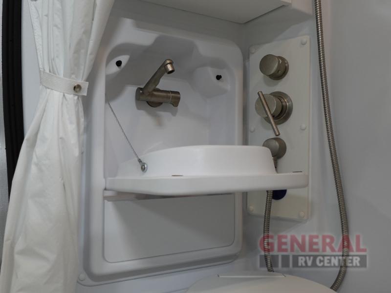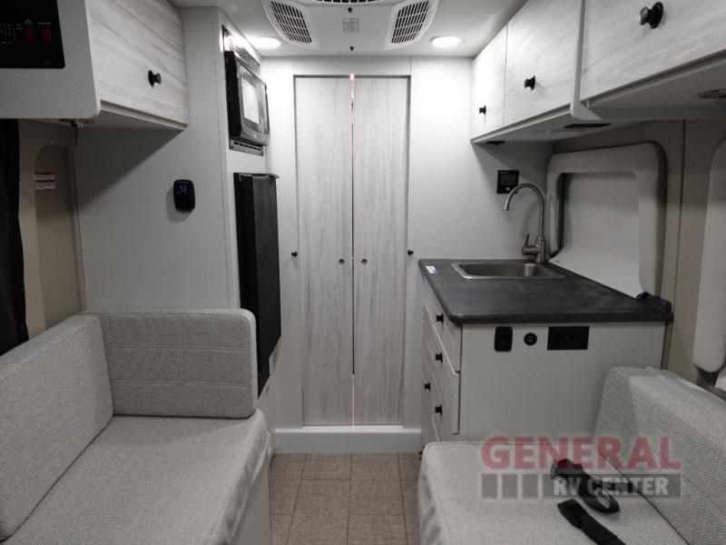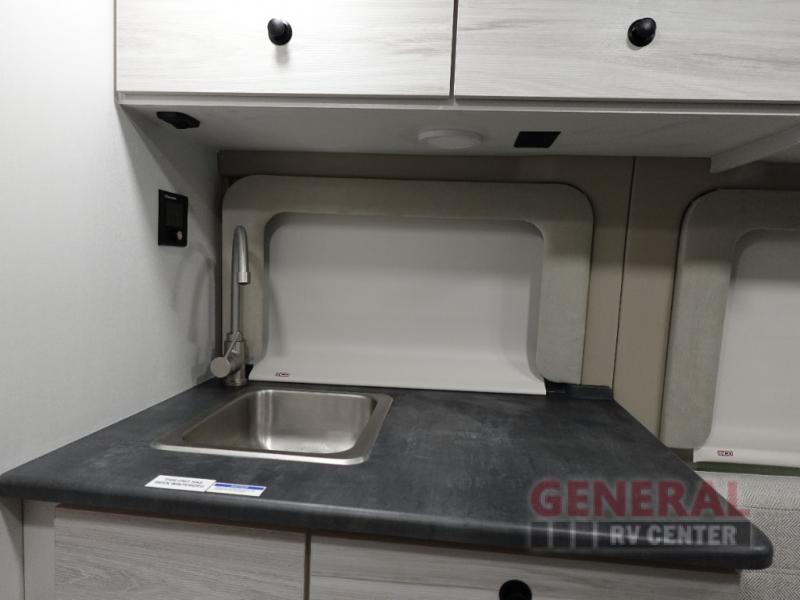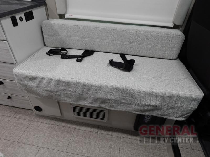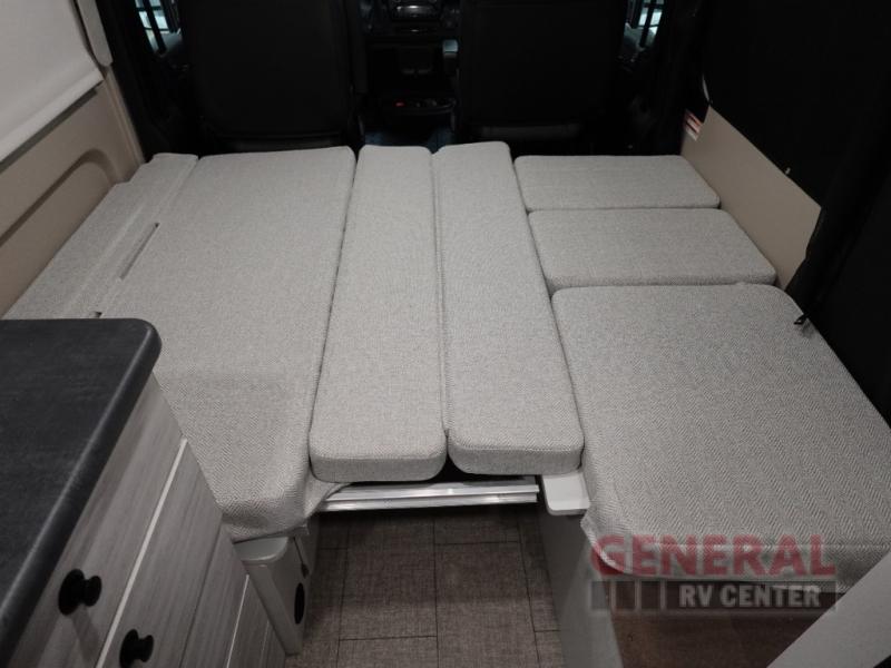 Any trip in this camper van will be spent in comfort thanks to the convenient wet bath and full kitchen amenities. You can whip up a hearty breakfast on the portable induction cooktop or use the microwave oven. There is a stainless steel sink to clean up, and the pressed countertops will be easy to clean. After you've hiked for the day and gotten cleaned up in the rear wet bath, you can relax on the 54" sofa that will convert to a 54" x 72" bed. There is also a 27" bench seat for more seating space and plenty of overhead cabinets for personal belongings, board games and more.