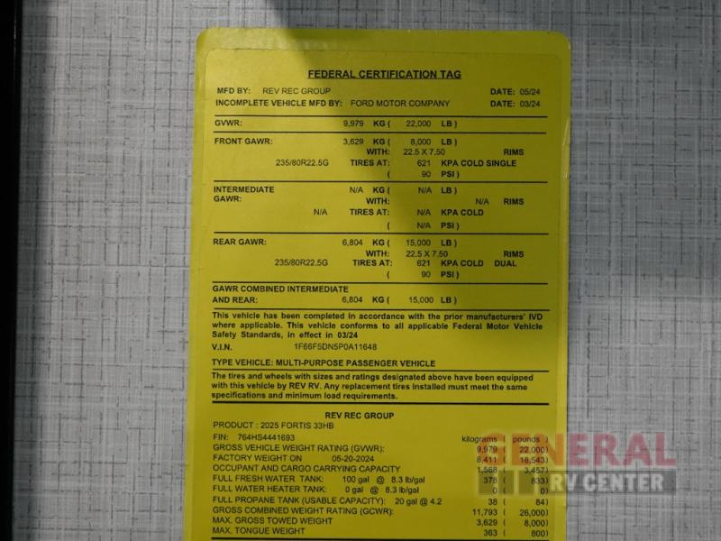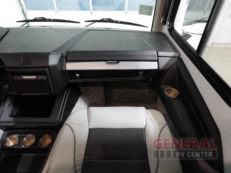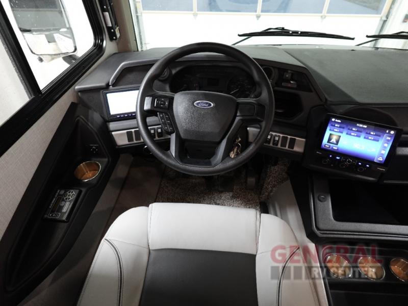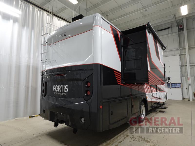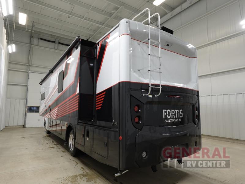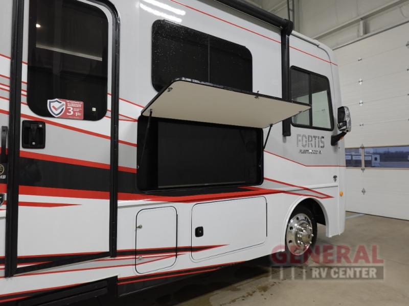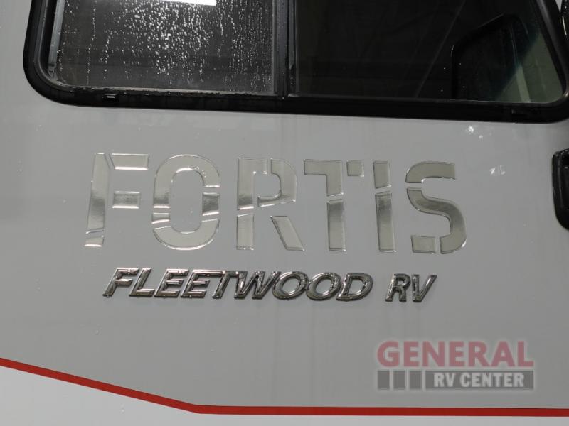 The Fleetwood Fortis Class A gas motorhome is a powerhouse of luxury and convenience, and it also is quite literally a powerhouse with its Ford 7.3L V8 335HP engine with 468 LB/FT of torque. The construction includes a Dryseal edge coating for all ceilings, walls, and floor, and the Powerlock System 2 has interlocking walls to the roof for stability. Automatic hydraulic leveling jacks make the set-up process easier, and you'll love the new captain's seats by Villa. You will find vinyl tile flooring all throughout the interior, as well as full-extension drawer guides with latches, coordinating window treatments, and energy-efficient LED flush-mount ceiling lighting.