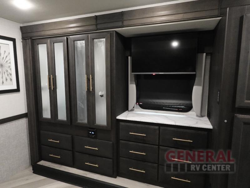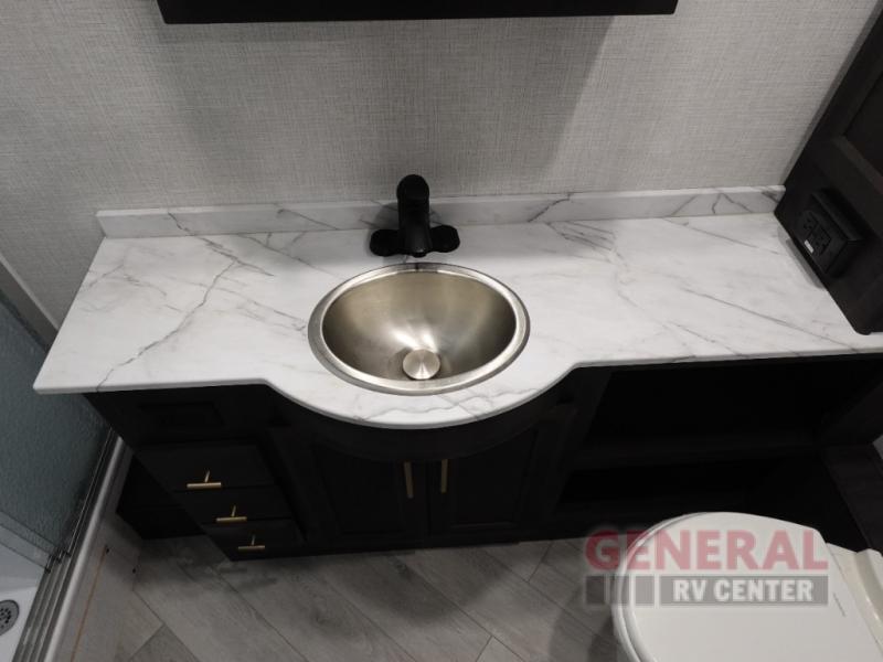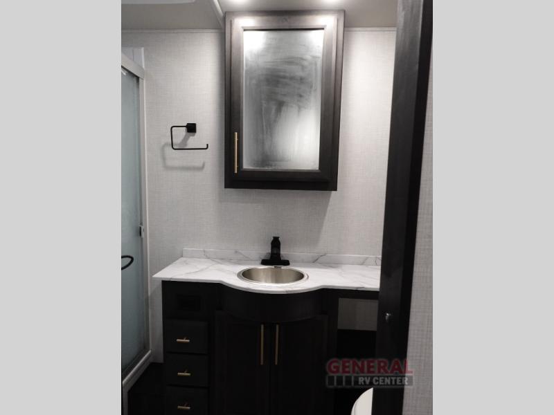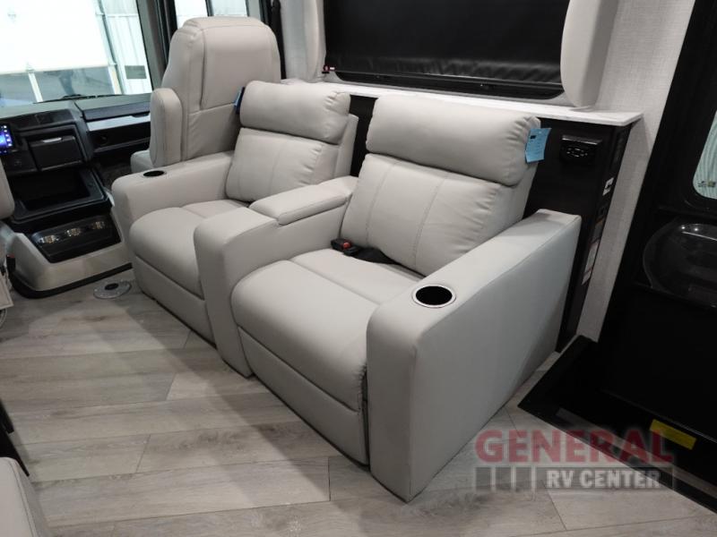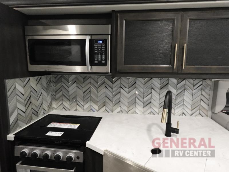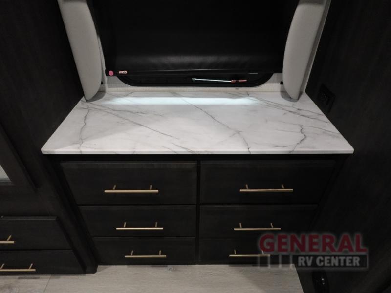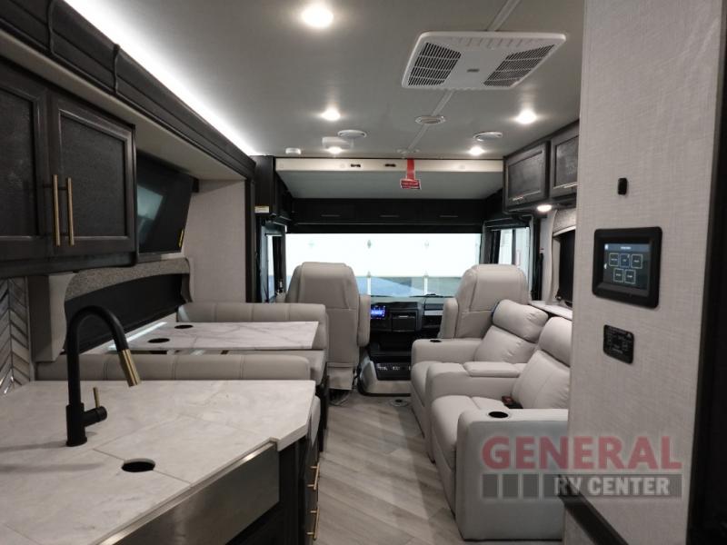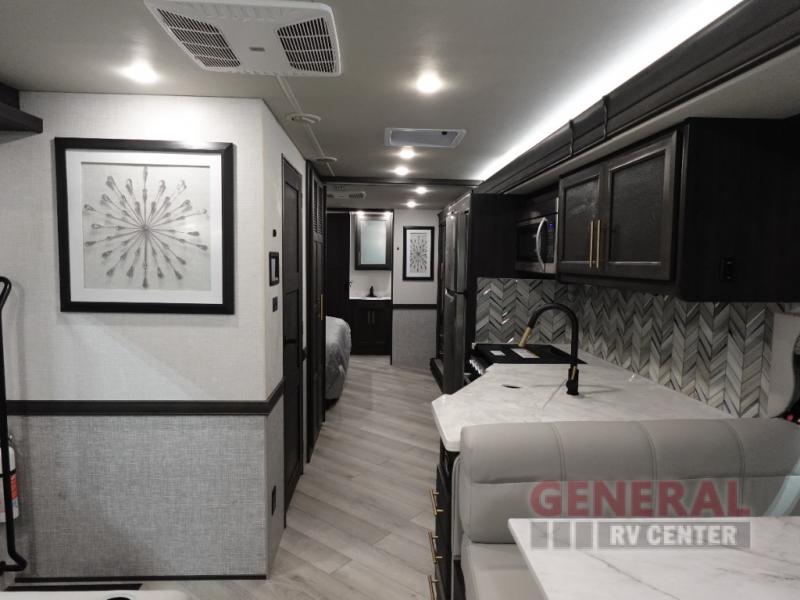 The Fleetwood Fortis Class A gas motorhome is a powerhouse of luxury and convenience, and it also is quite literally a powerhouse with its Ford 7.3L V8 335HP engine with 468 LB/FT of torque. The construction includes a Dryseal edge coating for all ceilings, walls, and floor, and the Powerlock System 2 has interlocking walls to the roof for stability. Automatic hydraulic leveling jacks make the set-up process easier, and you'll love the new captain's seats by Villa. You will find vinyl tile flooring all throughout the interior, as well as full-extension drawer guides with latches, coordinating window treatments, and energy-efficient LED flush-mount ceiling lighting.