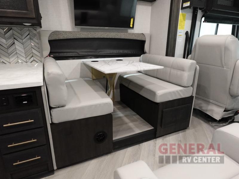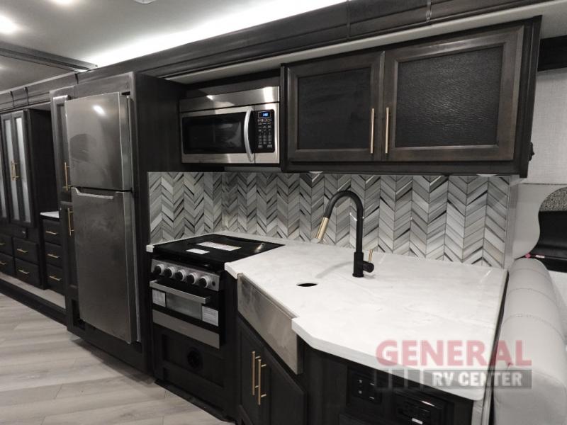 Get your bags, pack them up in the pass-through basement storage, and head out with this Fortis Class A gas motorhome! You can cook up a big pot of oatmeal on the three-burner cooktop each morning, and you can heat up leftovers for lunch in the stainless steel convection microwave. Store all of the ingredients to prepare these delicious meals in the residential refrigerator and pantry. Space won't be a problem because the full-wall slide and the RV king bed slide add more room to this coach, and there are plenty of bathroom amenities with the full bathroom for you back in the master suite as well as the half bathroom in the main living area for everyone else. Take advantage of the extra sleeping space that comes from the Dream Dinette and jackknife sofa, and there is also a Hide-A-Loft drop-down bunk above the cab.