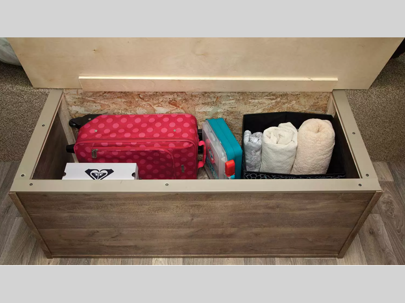 Nothing is better suited for family fun than these units with a long list of standard features. The enclosed Darco wrapped underbelly will help protect your unit and the aluminum solid trip step will provide a sturdy entrance into your camper. Inside, you'll enjoy Congoleum linoleum, night roller shades, LED lighting, and many more comforts.