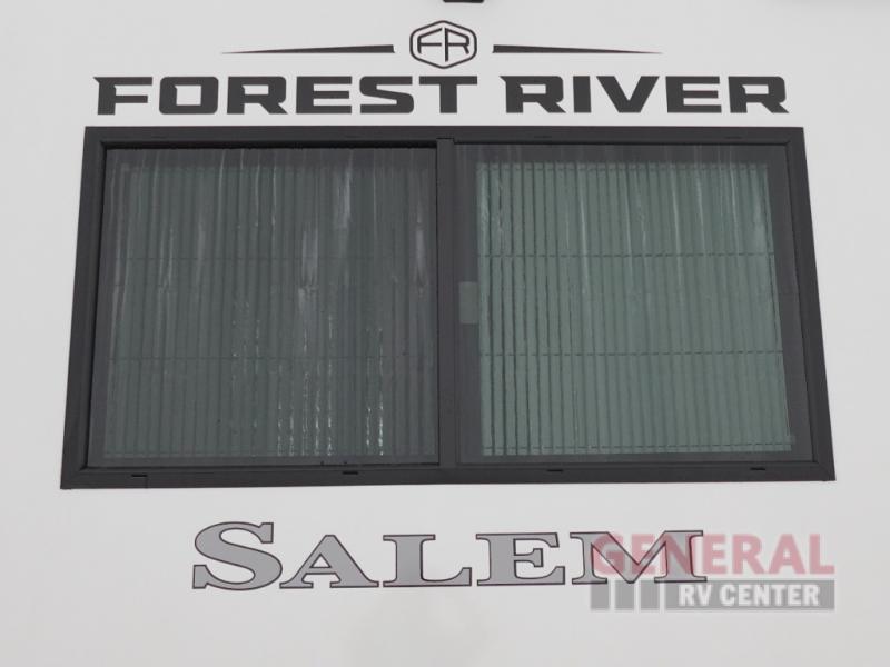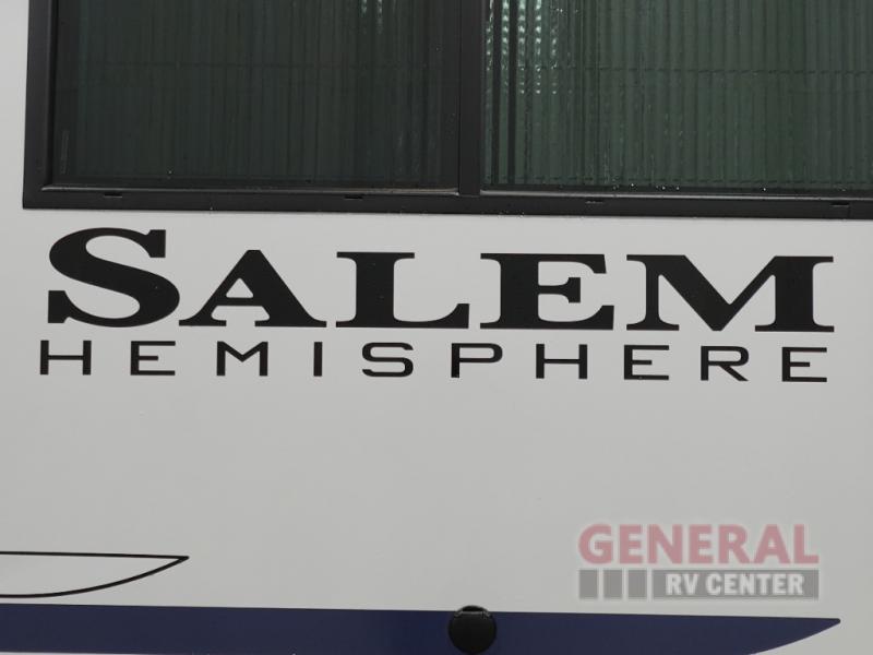The Salem Hemisphere travel trailers by Forest River are packed with features, while still being value-minded! Each model is constructed with laminated "Aluma Frame" sidewalls and floor with block foam insulation plus an enclosed underbelly with 12V tank heaters on all holding tanks. There are LED awning, marker and taillights outside, along with an extra-large pass-thru storage with slam latch baggage doors, plus solar prep and Lippert On-The-Go ladder prep. The 60K on-demand tankless water heater will provide endless hot showers, and the JBL sound system includes a head unit plus interior and exterior speakers to keep the party going. There are also many interior comforts found throughout that will make you feel right at home!