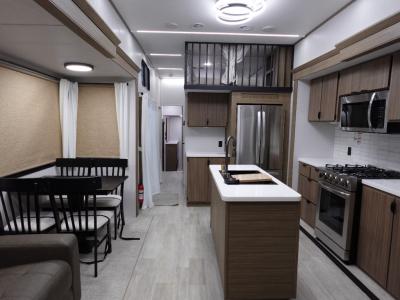 With any Wildwood Grand Lodge destination trailer by Forest River, you can enjoy extended stays wherever you go! There is 4K awning blade lighting outside, along with Tufflex PVC roofing, plus a heated and enclosed Accessibelly for added protection. Inside, you'll love the stylish backsplash update, elegant curtain rods and curtains, TFL black walnut entertainment shelves, and stainless-steel kitchen appliances. A Serta mattress in the bedroom(s) will provide comfort to each journey, and there is a tankless water heater for hot water when you need it.