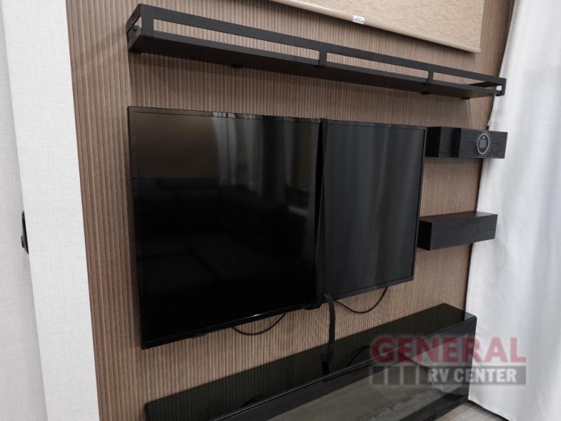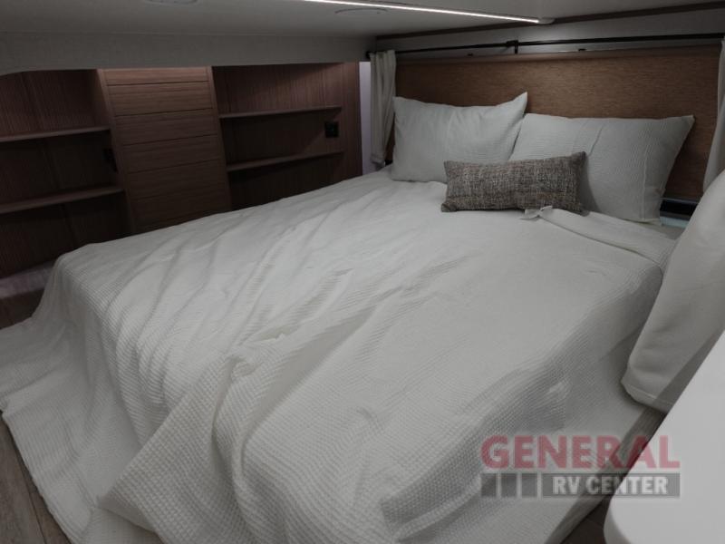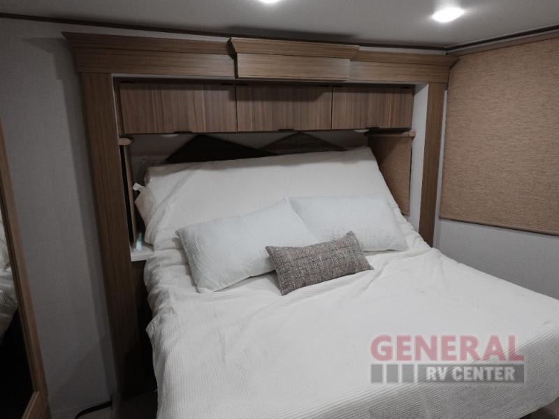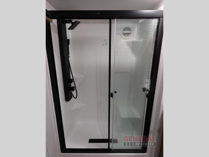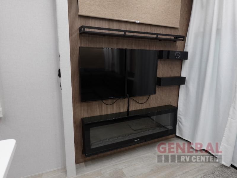 With any Wildwood Grand Lodge destination trailer by Forest River, you can enjoy extended stays wherever you go! There is 4K awning blade lighting outside, along with slide out awning toppers, plus a heated and enclosed Accessibelly for added protection. Inside, you'll love the stylish backsplash update, elegant curtain rods and curtains, TFL black walnut entertainment shelves, and stainless steel kitchen appliances. A Serta mattress in the bedroom(s) will provide comfort to each journey, and there is a tankless water heater for hot water when you need it.