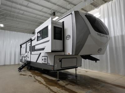 Invite the grandkids or your neighbor friends for your next camping trip in this Wildwood Heritage Glen Elite fifth wheel that features a front entertainment center and living area. Your guests will love the two tri-fold sofas within dual opposing slides to make the room their own. You'll also enjoy theatre seats and a fireplace for an even more at-home feel. The large pantry in the kitchen is very handy as well as the breakfast bar with swivel bar stools. This unit also includes a full and half bath for your convenience, and a king bed with Versa-Tilt on an Elite extra-wide bed slide in the private bedroom. There is abundant storage with multiple pass-through compartments included, so you don't have to leave any of your larger gear behind. Outdoors, you can also enjoy the 20' awning, the strut-assisted steps when entering and exiting, and the Elite outdoor bar and entertainment center which includes a 32" TV, a griddle, and a refrigerator.