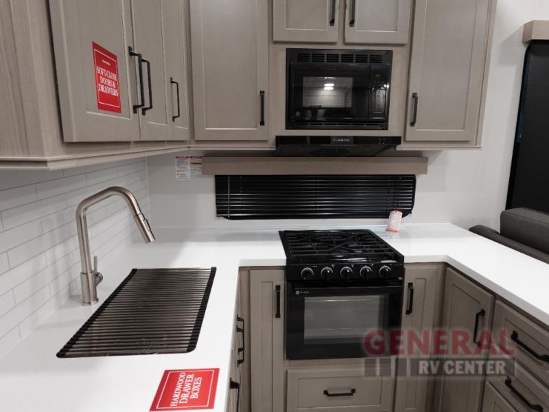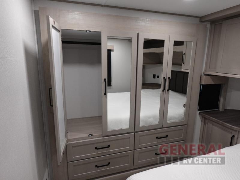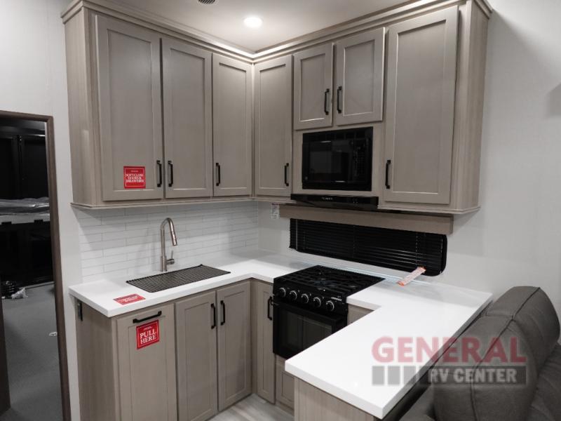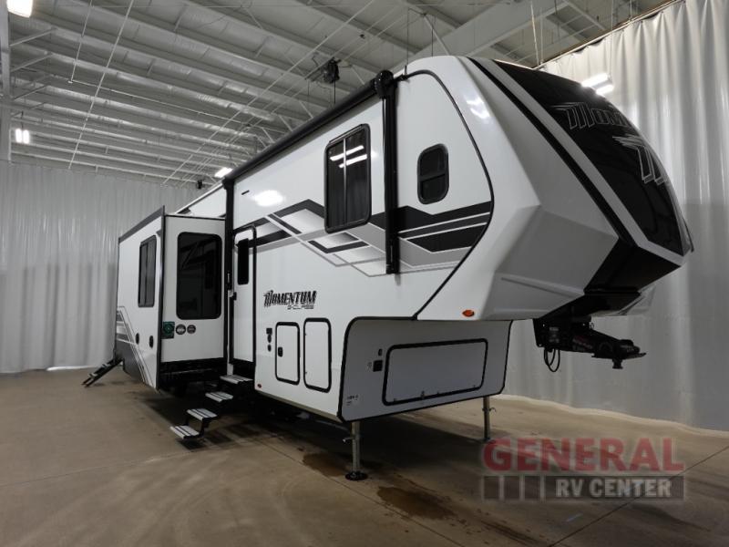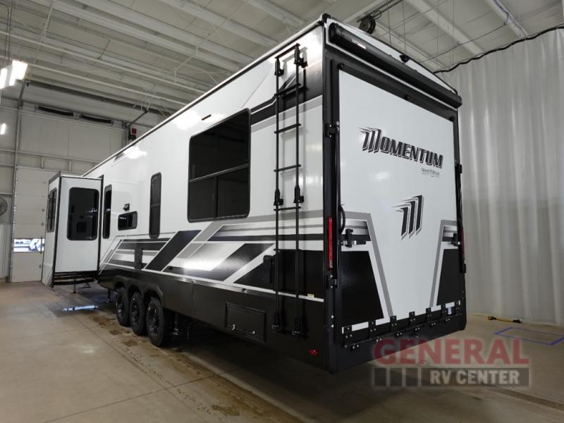 Are you looking for adventure and fun? The Momentum G-Class toy hauler by Grand Design will help you find it! You can explore during any season you choose with the Insulation Package that includes a heated and enclosed underbelly with suspended tanks, a high-capacity furnace, a moisture barrier floor enclosure, and cabinet-mounted heat ducts. Each model includes a fuel station with an interior and exterior gauge, a dovetail rear rend, and 2,500-LB tie-downs anchored into the chassis. Throughout the Momentum G-Class interior, you'll enjoy many comfortable features like large panoramic windows, a shower skylight, USB chargers in the bedroom, and residential cabinetry.