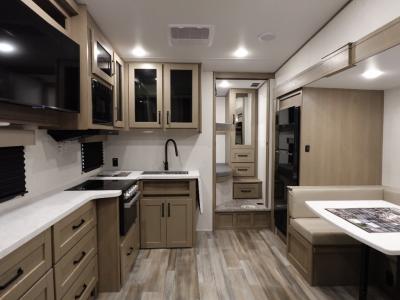 Rear Living Area, Kitchen Island, 31 ft 0 in in length, weighs 8400 lbs lbs, sleeps up to 5, 2 slides, many colors ...more