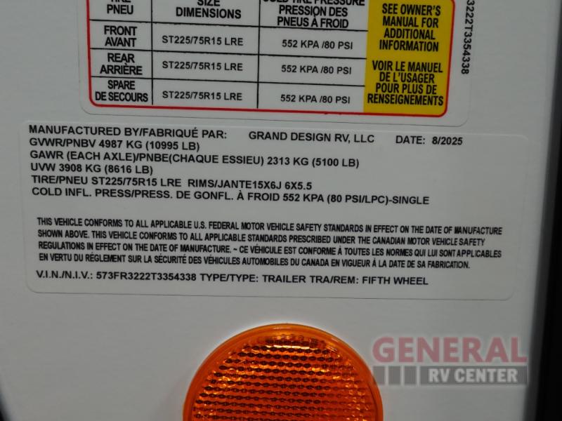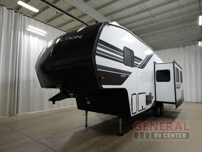 Each Reflection 100 Series fifth wheel by Grand Design is affordable and packed with luxury for unforgettable camping memories! The MorRyde CRE3000 suspension system and Goodyear Endurance tires will provide smooth towing from home to campground. And the solar package with a 180W solar panel, 60 Amp charge controller and 12V refrigerator will allow you to camp for longer periods of time and in more locations! A heated and enclosed underbelly with circulating heat is included in the Arctic 4-Seasons Protection Package, along with a double insulated roof and front cap, and thermofoil insulation under the holding tanks so you can camp all year long if you choose. You will appreciate having an on-demand water heater for hot showers after exploring, and the universal all-in-one docking station will let you monitor your RVs tanks levels and functions with ease. These models also include many luxurious interior features, such as premium Congoleum flooring, pleated shades, residential cabinetry, and matte black fixtures and hardware. Don't let the Reflection 100 Series fifth wheels pass you by!