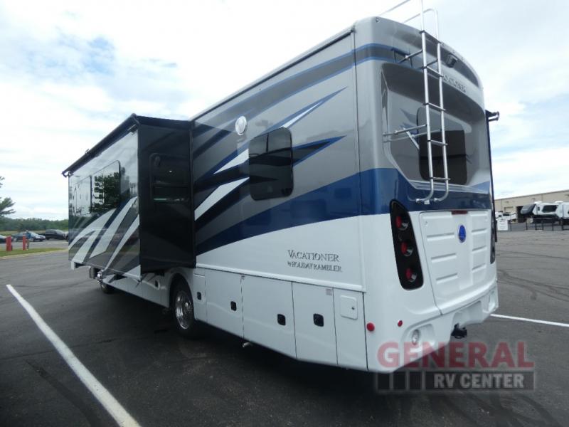 Escape the boring for fun trips in a Vacationer Class A gas motorhome by Holiday Rambler. You can easily make this coach your home-away-from home with features such as dual A/C units, vinyl tile flooring, and stainless steel appliances. The bus-style luggage doors will make for easy unloading, and the automatic hydraulic leveling jacks make setting up camp easier than ever. The Vacationer is constructed with a Powerlock System with interlocking floor, walls, and roof, plus premium gel exterior Vetrosina fiberglass skin with no wood substrate for added durability. Each model includes an automotive style dash with dual monitors, and MultiPlex house controls that can easily be controlled by your smart phone or tablet. The list of standard features doesn't stop there. You'll have an environmentally friendly 100W solar panel, an exterior entertainment center, large holding tank capacities, and so much more!