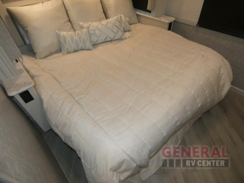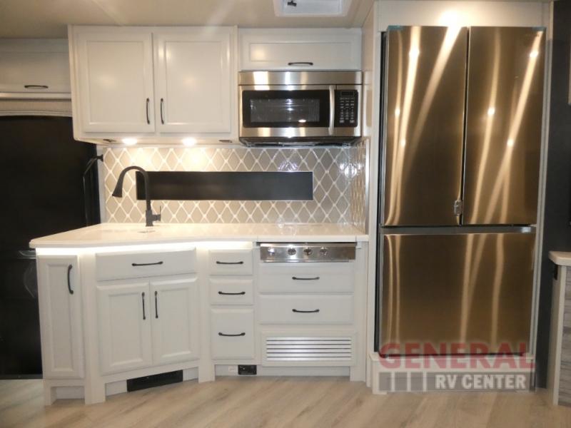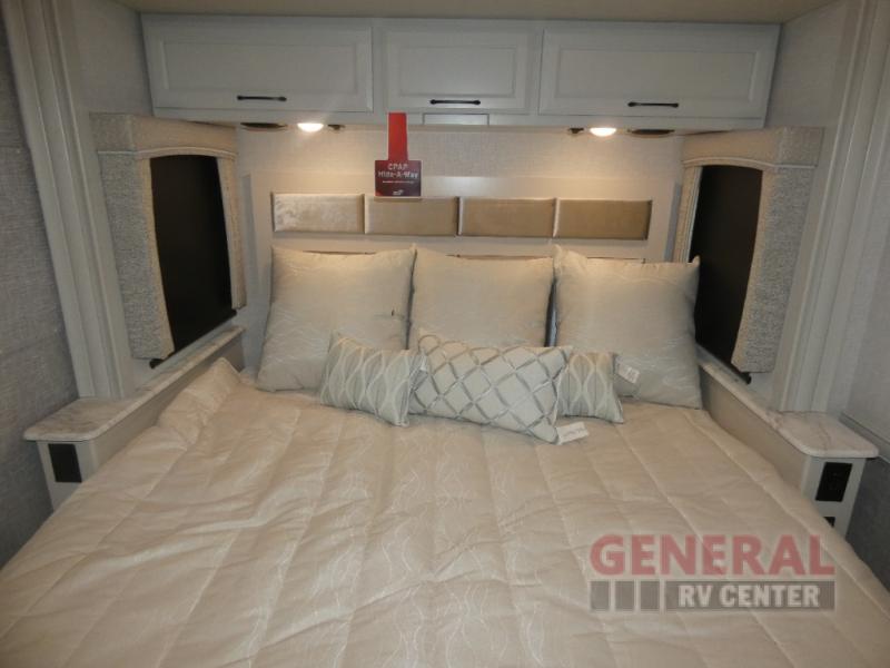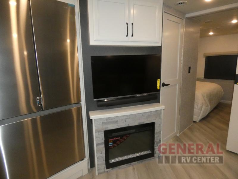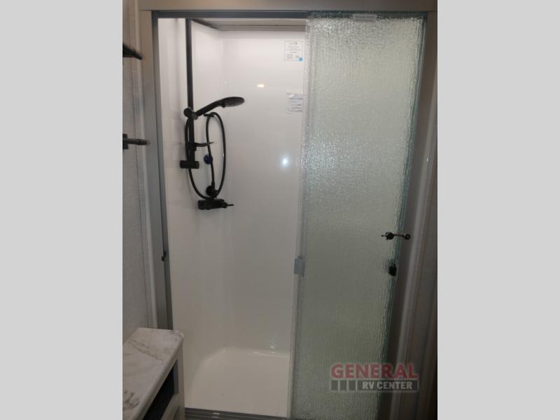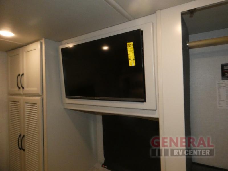 This double slide out coach will meet your needs perfectly on every family vacation. There is a Rest EZ booth dinette and jack-knife sofa in the main living area, plus a fireplace with an LED TV to make it feel a little more like home. You can prepare meals on the three burner cooktop, and leftovers can go in the stainless steel residential refrigerator. You're going to love the spacious full bath that includes a shower with a seat, a skylight, plus a medicine cabinet with a mirror. The optional Hide-A-Loft drop-down over bunk can be added if you need a space for guests, and you'll enjoy the Serenity Series king bed slide out and your own LED TV!