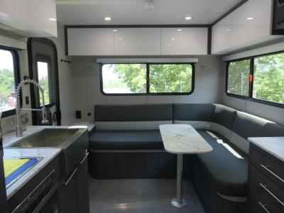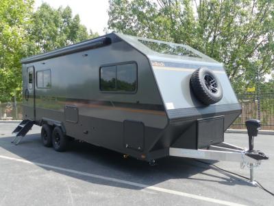 The O-R-V travel trailers and toy hauler by inTech RV allow you to experience adventure off the beaten path with its rugged exterior and lightweight construction provided by the all-aluminum fully welded cage frame. The power tongue jack will make setting up camp a breeze, plus there is a fold-away double entry step and exterior lighting for added convenience. Inside, you'll find a large farmhouse style sink, a MaxxAir vent for ventilation, plus infinity woven flooring. There is a Bluetooth stereo with four speakers and a 32" Smart TV included with each model, plus USB and 110V outlets to keep your electronics charged and ready to go. Further customize your O-V-R by adding the optional power awning or the optional Off-Grid Package with 400 watts of solar power, 20 amp hours of lithium batteries, and a 2,000 watt inverter!