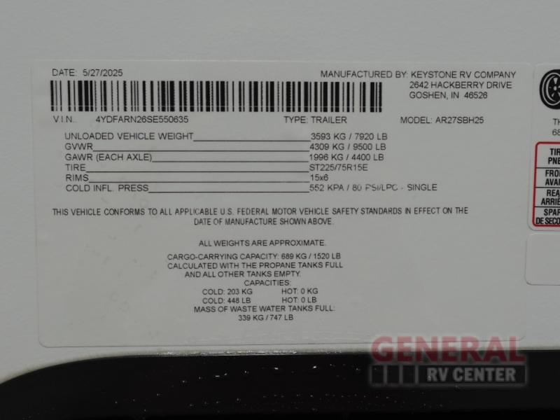 Keystone Arcadia Select fifth wheel 27SBH highlights: