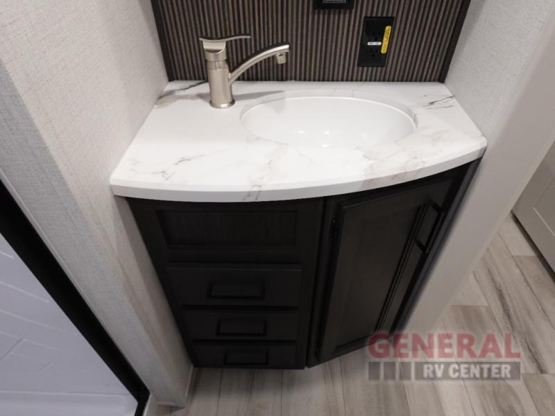 With any Arcadia Select fifth wheel by Keystone you will enjoy easy towability and at-home comforts at an affordable price! The laminated sidewalls with five sided aluminum superstructure will provide a strong foundation so you can enjoy your RV for years to come, plus a one-piece, heated and enclosed polypropylene underbelly means you can camp year around! And an upgraded Roto-Flex hitch pin will make it easy to tow. Head inside to find tall slides for added space, seamless, pressed countertops, convenient underbed storage, and a large shower with a retractable door and skylight. These fifth wheels also include a Blade Pure A/C system, Girard on-demand tankless water heater, two 30 lb. LP tanks, and more utilities to make your camping experience run smoothly.
