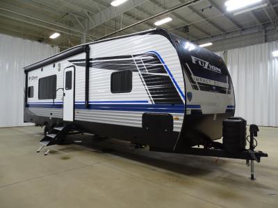 Embrace the great outdoors with a Fuzion Impact Edition toy hauler by Keystone! There is an aluminum exterior and a 8' 4" wide-body construction for your toys and gear! The one-piece polypropylene heated underbelly includes enclosed tanks and valves which will help extend your camping season, and the leaf spring suspension system will provide smooth towing. Head inside to enjoy night shades, hardwood cabinetry, and fiberglass backed linoleum floor with no carpet-free for easy cleaning. Each model also includes a Girard on-demand water heater, two 30 lb. LP tanks, recessed LED puck lighting throughout, and the list of comforts goes on!
