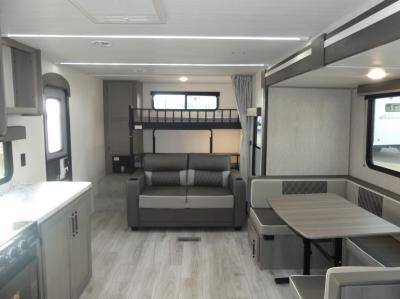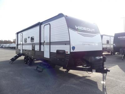Are you looking for a travel trailer with more space, more amenities, and more sleeping space? Look no further than this Hideout! There are convenient dual entry doors for a smooth flow of traffic, a walk-through bath that will create a front master bedroom, plus bunks in the back with flip-up utility storage for your gear. And you can easily access this gear from outside using the storage door under the bunks! Everyone can meet in the main living area around the U-shaped dinette or on the sofa that be switched out for an optional tri-fold sofa or optional theater seating. And since there is TV prep you can make this space feel even more like home! The chef of your group will have everything they need to prepare meals each day, including a three burner cooktop and plenty of counter space. Head outdoors after dinner to enjoy the 21' power awning and grab a cold drink from the outdoor refrigerator!