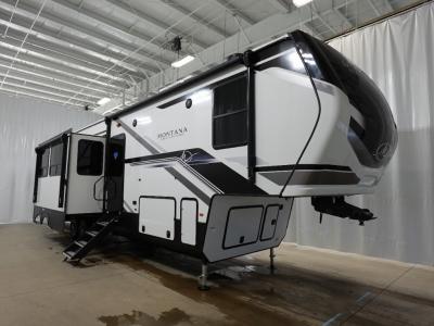 Live the high life with a Keystone Montana High Country fifth wheel! You'll have all the luxury you need with these units. They come with a MaxTurn™ front cap with KeyShield™ automotive-grade paint, a fully walkable roof with Alpha seamless TPO membrane system, and an insulated underbelly with forced hot air and electric tank heaters. The MORryde CRE3000 suspension with wet bolts helps provide a smooth tow, and the Ground Control® four-point electric auto-leveling with hitch memory will make set-up quite easy. The interior is elegantly appointed with the Thomas Payne Collection furniture, hardwood decorative slide-out fascia, Beauflor® vinyl throughout, accent crown molding, and premium solid surface kitchen countertops.