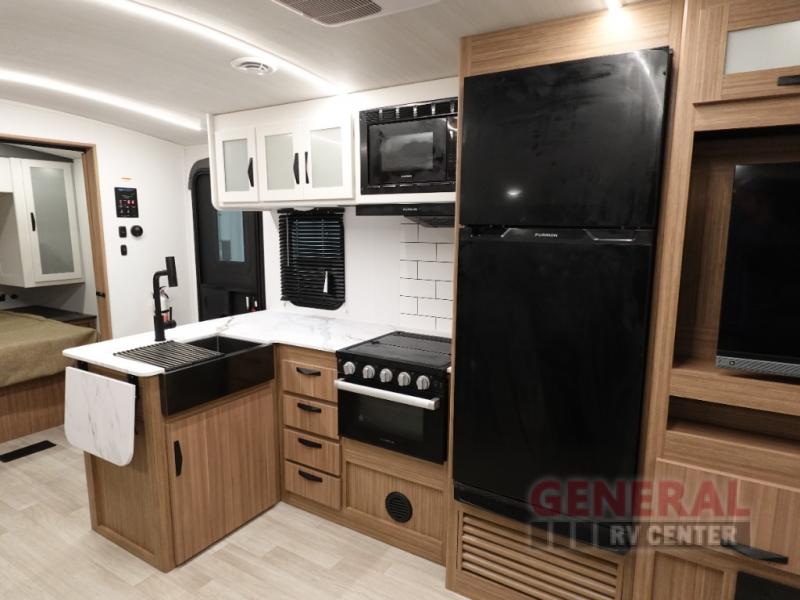 With any Keystone Passport Super Lite travel trailer you will enjoy lightweight towing and lots of interior comforts! The power tongue jack lets you hitch up at the drop of a hat, and the Dexter torsion axle rubber ride suspension will make towing easier than ever. You will appreciate having power stabilizer jacks for quick setup and an exterior convenience center to monitor tank levels. These trailers are constructed with a seamless, laminated and gel-coated filon exterior, 80% tinted safety glass windows, and a one-piece polypropylene underbelly. The interior will have you feeling right at home with residential durable Beauflor vinyl flooring, deluxe night shades, and seamless kitchen countertops to name a few comforts.