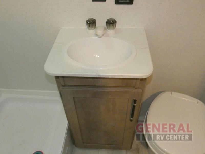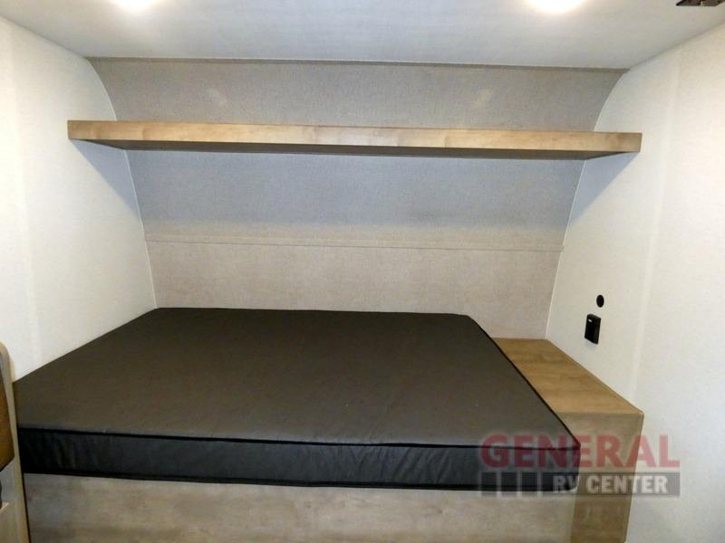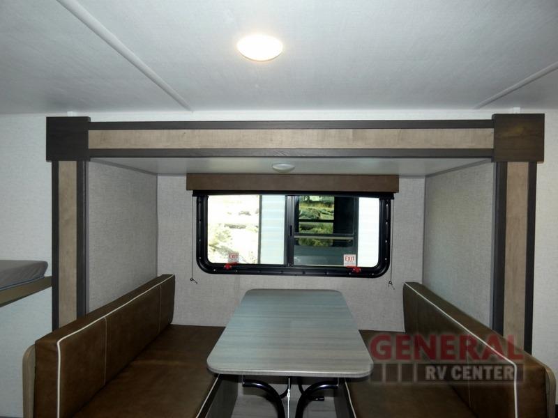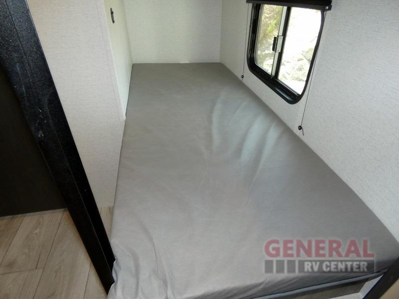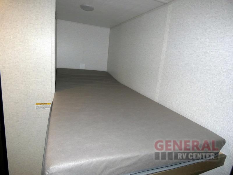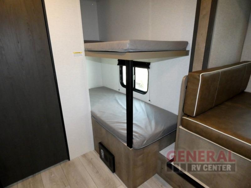 When you say "camping" your kids will immediately think about sleeping on the bunk beds and playing outdoors! There is something about planning the trip that gets everyone excited, and once at your campsite, the excitement grows. You will have your own bed up front as well as a closet and nightstand for your things. The booth dinette doubles as sleeping space and includes drawers for storage, plus the slide provides more floor space. The cook can make warm meals in the galley kitchen, and the full bathroom will keep everyone refreshed and ready for the next day.