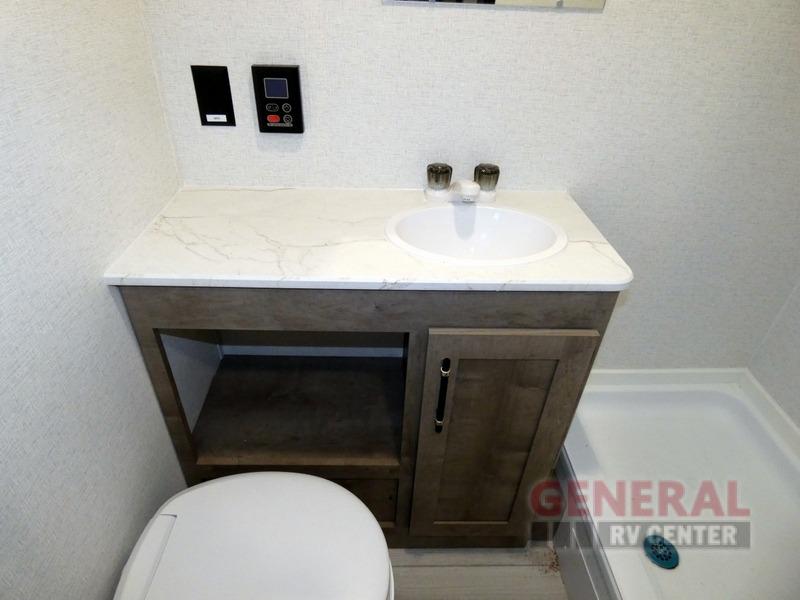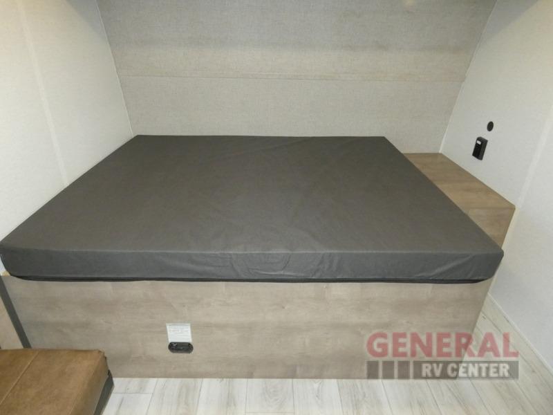 When you want to explore the outdoors and relax indoors, this trailer will provide the comforts, conveniences and many of the wants you will need to do both! The interior is spacious with the large slide out which includes a booth dinette and sofa, both with storage drawers. And the furniture doubles as sleeping space when you have overnight guests. There is a pantry and a closet next to the full bathroom which is handy, and the galley kitchen offers a 7.7 cu. ft. 12V refrigerator to store the cold items. You will also sleep soundly each night on the front queen bed. The exterior offers a 15' power awning plus a pass-thru compartment for your outdoor camping chairs, tables, charcoal and more.