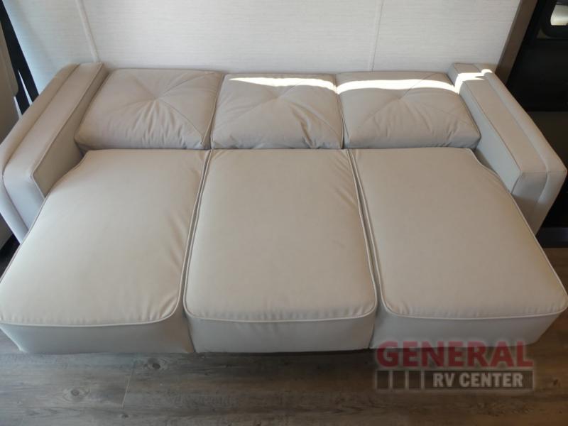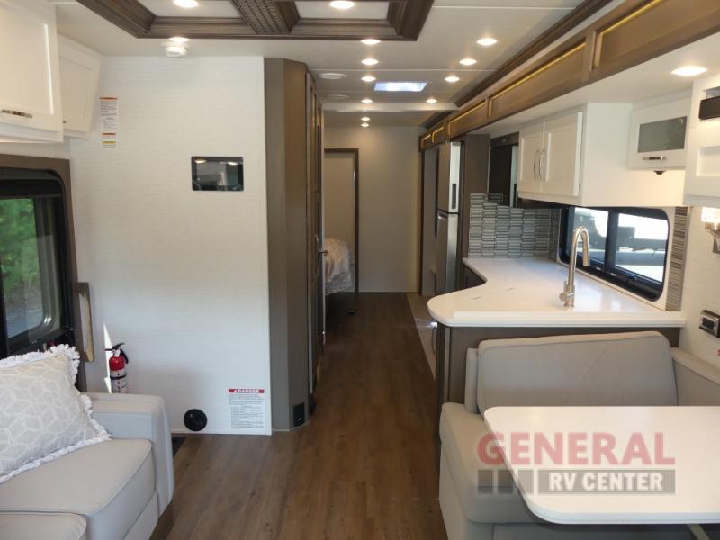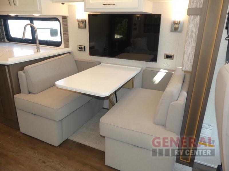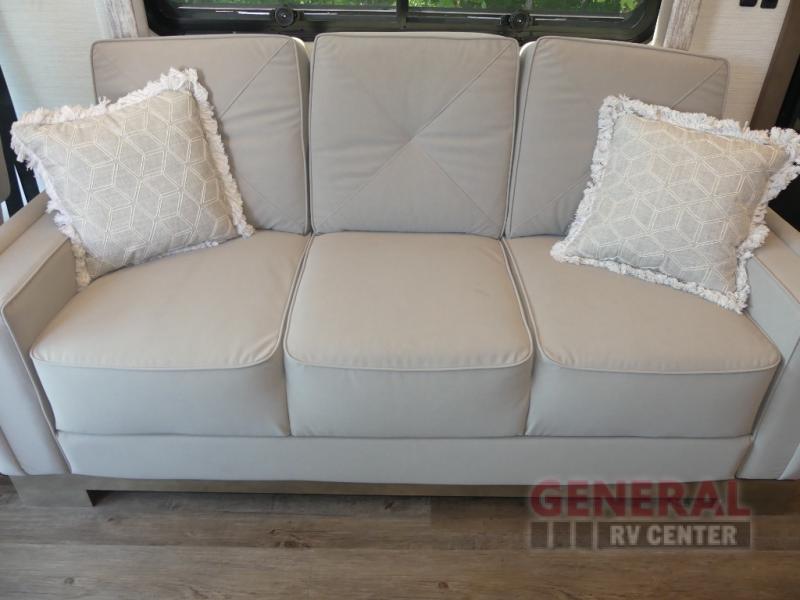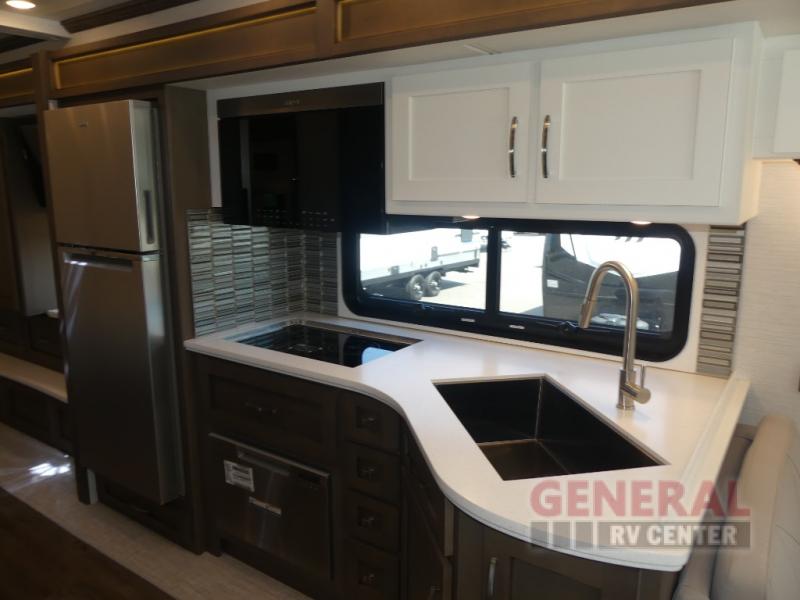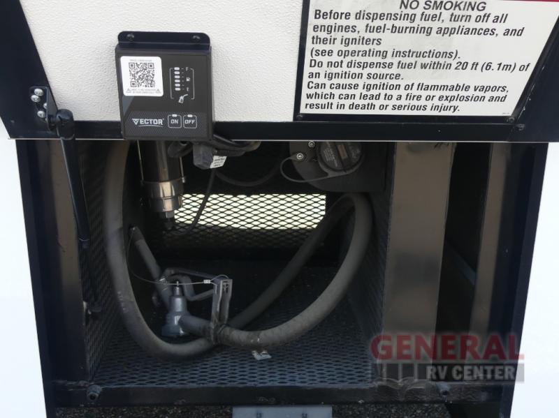 With any Canyon Star Class A diesel toy hauler motorhome by Newmar, you will enjoy a Freightliner front engine diesel chassis with 340HP to power your trips. The garage has so many features that will make your trip easier, like a fueling station, ramp door, assist handle, and even prep for an optional washer/dryer. There's also a rear hitch for towing your car. In the garage you can also add optional electric lift bunk beds or a pedestal table with seating if you need extra room for guests. Keep everything going with the six 6V house batteries, 2000 watt Tru Sine inverter, and a 10 watt solar panel to charge it all. There's also an 8.0 kW Cummins Onan Quiet Series Generator for additional power needs. You'll appreciate the on demand water system, and you'll be extra comfortable with the propane gas furnace with ducted heat plus dash heater and air conditioner.