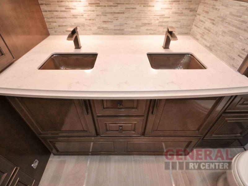 Luxurious accommodations and elegant amenities are found in abundance on the Newmar Dutch Star Class A diesel motorhome! The interior features a tile floor, decorative wall art, hardwood raised panel doors, and MCD window shades. There are also super-polished solid-surface countertops, six-way power cab seats with recliner and footrest, and push-to-release drawer slides in the pantry. And the electric radiant heat installed below the main floor and bedroom tile is sure to bring comfort wherever you go! You'll find great convenience from the rearview color monitor system with audio, and there is a Bluetooth microphone for the dash radio. The roof has been prepped for a satellite dish, and the dash radio comes with a Harman/JBL 180W sound system and subwoofer.
