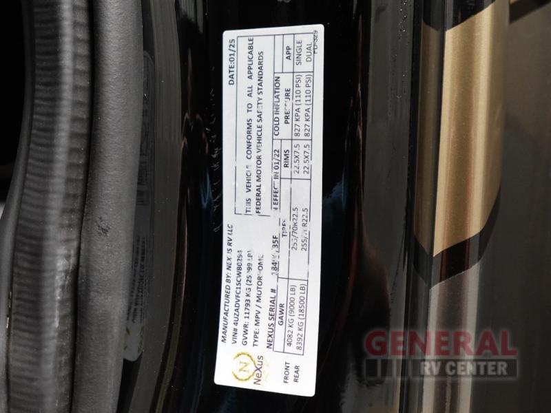 If you're looking for quality, safety, and luxury in a motorhome, look no further than one of these NeXus RV Wraith Super C diesel motorhomes! A Freightliner S2 RV chassis holds them together and a 6.7L 340 HP Cummins ISB diesel engine coupled with a 6-speed Allison transmission powers them. They have a best in class "all steel-composite" that is up to 72% stronger for safer rides and the steel in the superstructure helps minimize potential water damage while also maximizing the thermal and sound insulation. Experience at-home touches like a deluxe innerspring mattress, upgraded flooring, solid surface kitchen countertops, and night roller shades for privacy. You will be able to enjoy endless hot showers with an on-demand hot water heater, and the 6.0 Onan diesel generator will keep you powered up for every adventure. Outside, you'll love the look of the deluxe 4-color full body paint, and the frameless windows with automotive seal will help keep the elements out.