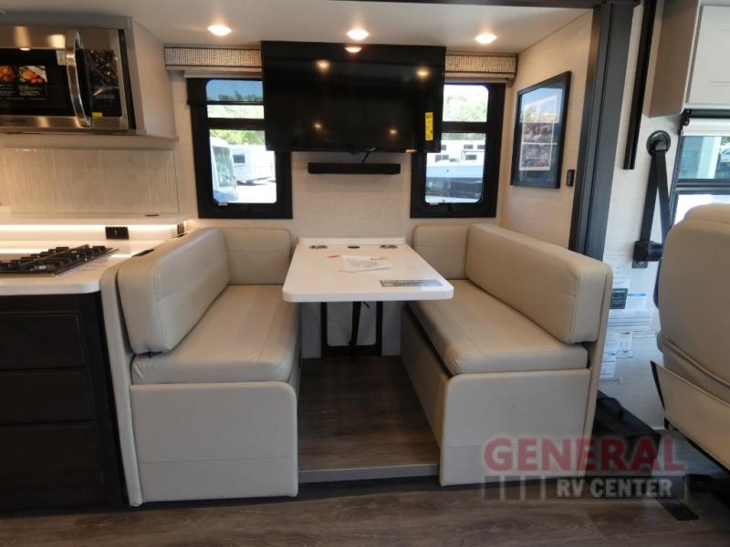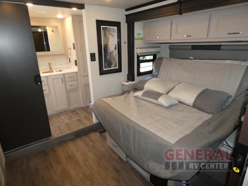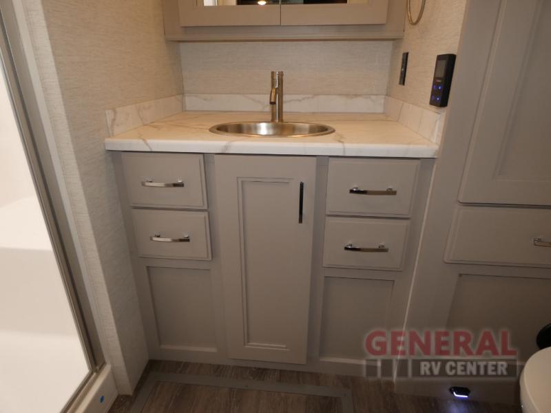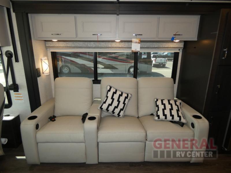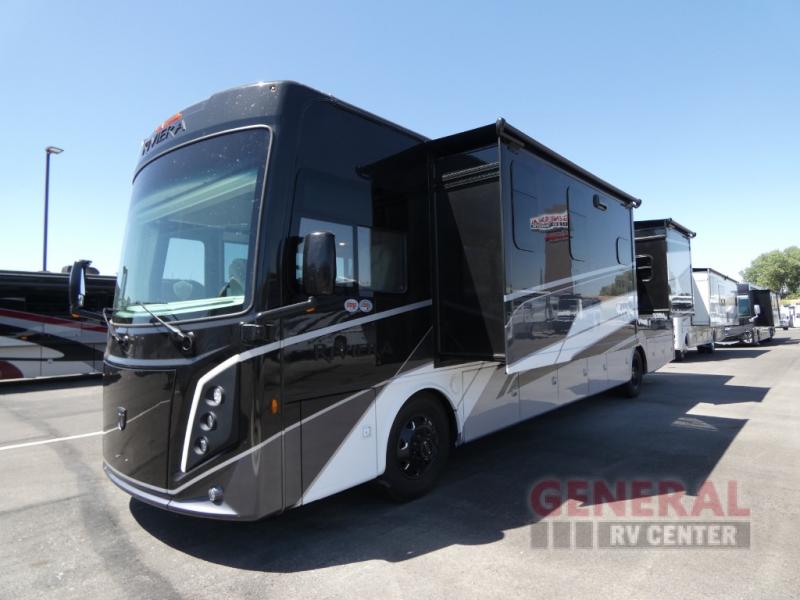 With any Riviera Class A diesel motorhome by Thor Motor Coach, you will enjoy a luxury home on wheels wherever you decide to roam! You will appreciate a capable Freightliner CS-S straight rail chassis with an Atlas foundation and better fuel mileage with the Cummins ISB-XT 6.7L diesel engine. There is a spacious basement pass-through storage for your camp gear, a powered patio awning with LED lighting, and an exterior 40" LED TV for outdoor movie nights. You will be able to enjoy your coach for years to come thanks to the durable construction materials that include a welded tubular steel floor, Vacu-Bond laminated roof, walls, and floor, plus a one-piece domed roof membrane. The elegant interior is designed with luxury vinyl tile flooring, "Wyndham" cabinetry with “Rake” style cabinet doors & nickel finish hardware. Some of the amenities you'll appreciate on each model include the RapidCamp+ multiplex wiring control system, a tankless water heater, and an Onan RV QD 6000 diesel generator. Enjoy your RV life with a Riviera Class A diesel coach!