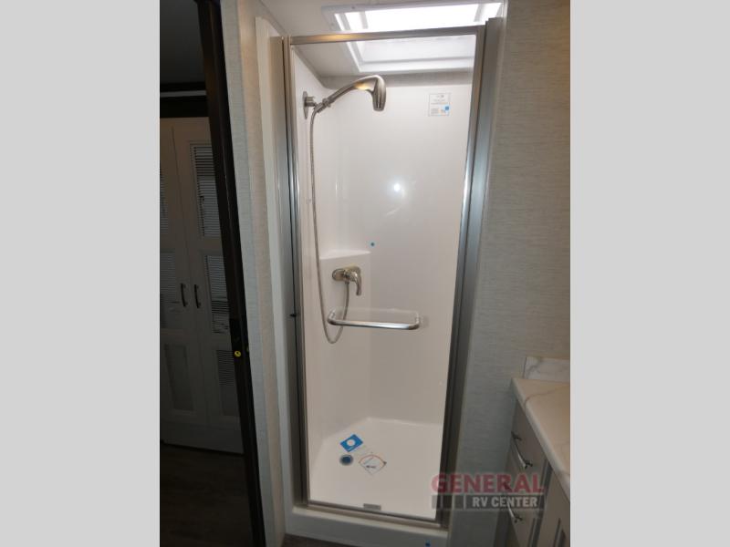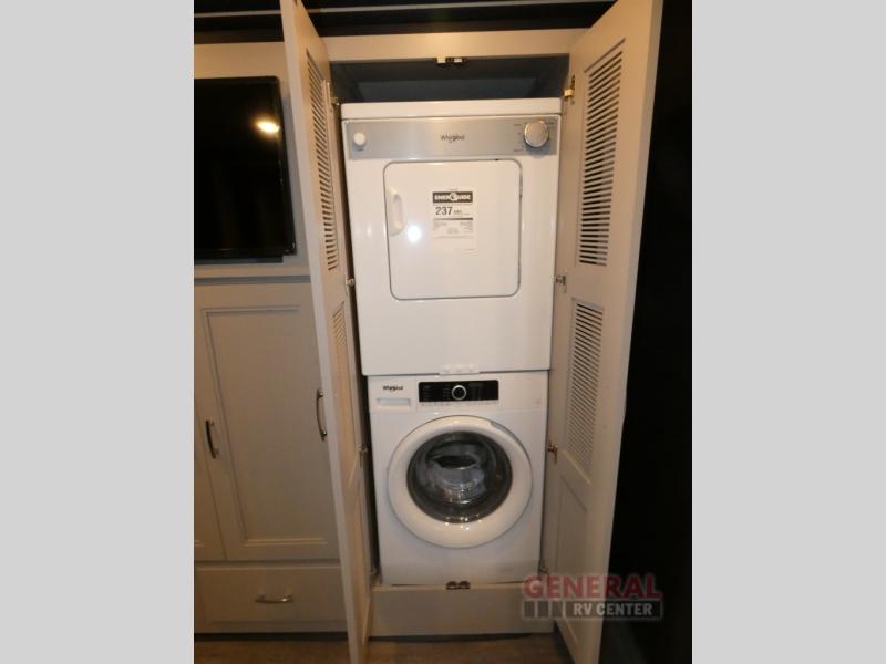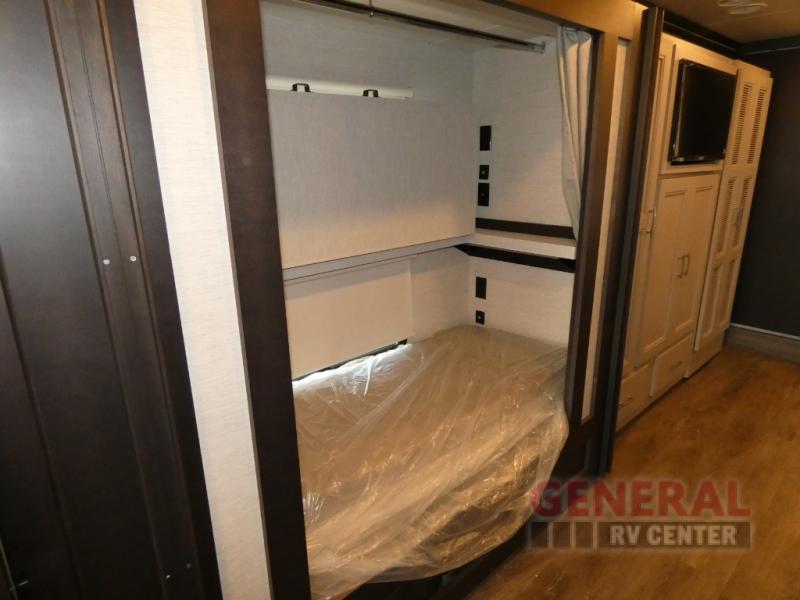 This coach can fit your whole crew thanks to the added bunk beds within the full-wall slide! There is also a drop-down overhead bunk, a Tilt-A-View inclining queen bed, a 72" Dream Dinette, and an 80" sofa for even more sleeping space! A full rear bath on board will let you clean up each morning, and there is a second full bath across from the bunks for your guests; how convenient! Head to the kitchen to prepare breakfast on the two burner electric induction cooktop or in the stainless steel over-the-range convection microwave, and there is a 19 cu. ft. side-by-side residential refrigerator where the milk and eggs can go back in. After a day outdoors relaxing under the 20' power awning and watching the game on the exterior 40" LED TV, you can head indoors to play a game at the Dream Dinette or get cozy with a book on the sofa!