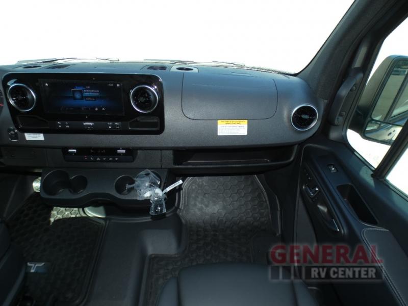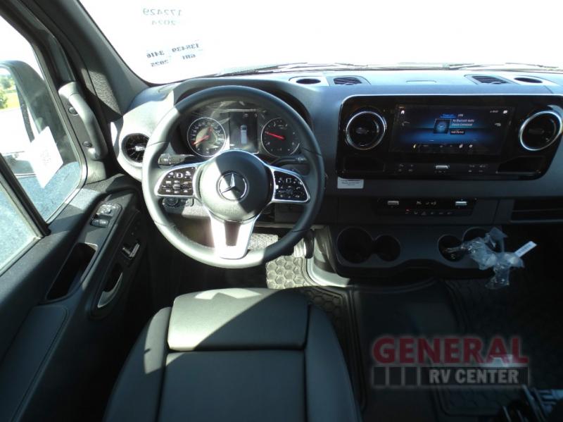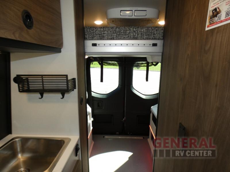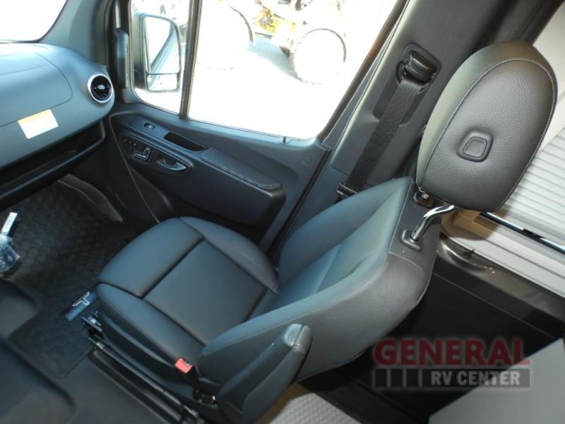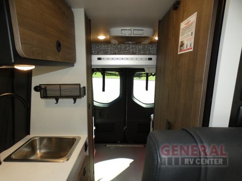 Pick a place, any place, and start packing. This off-road capable diesel van features a 49" x 79" gear garage beneath the power lift bed where you can store camp chairs, paddle boards for the lake, outdoor games and plenty of hiking gear. The on-board wet bath will keep you fresh and clean, and you can easily whip up meals and snacks in the kitchen with a single-burner induction cooktop and refrigerator beneath the counter for your perishables. There is also a sink for cleaning up and a removable counter extension. An optional jump seat and removable wall mounted swivel table behind the driver's seat can accommodate you for meals or a game of cards, or you can choose the optional adventure bar work/storage solution in place of the jump seat. Both front driver and passenger seats swivel to the back so you'll have plenty of seating even with company. At night, the power lift bed will allow you to get a great night's rest so you can enjoy it all again the next day!