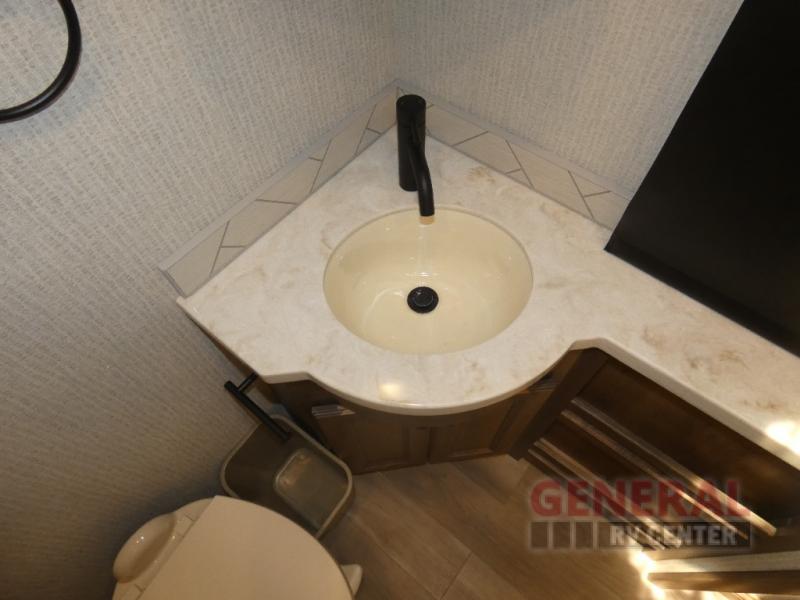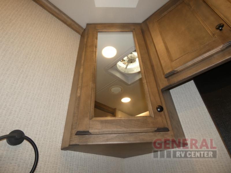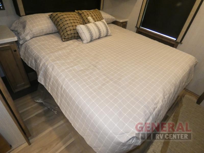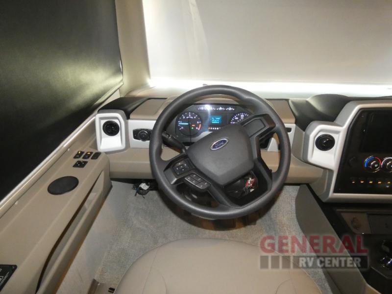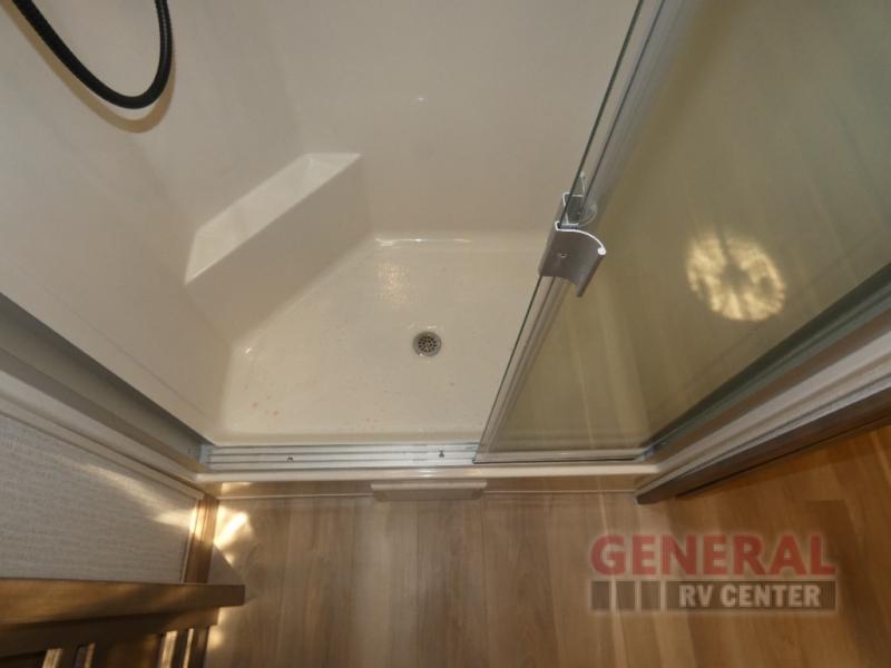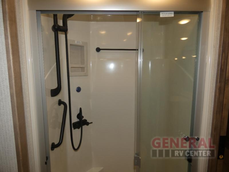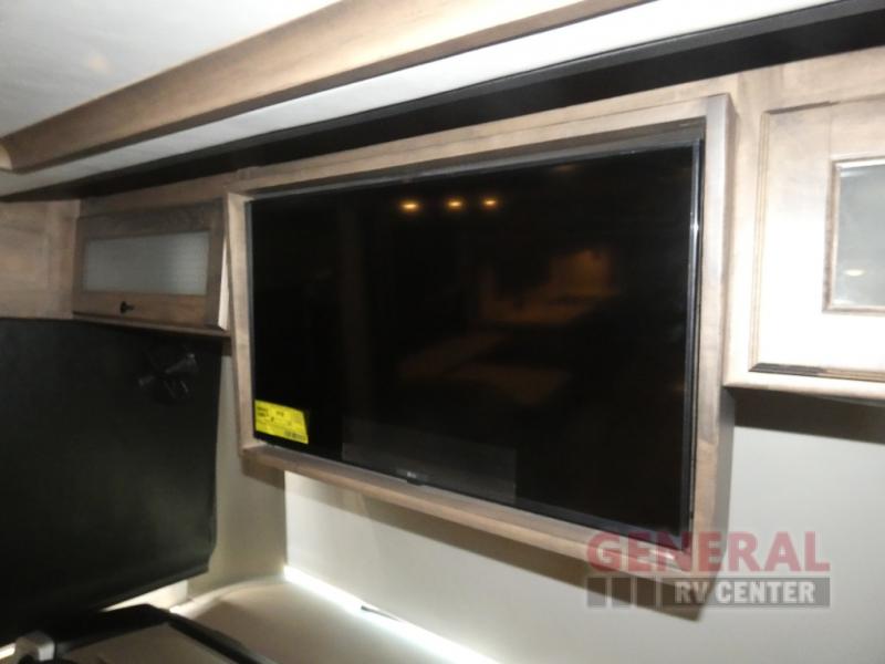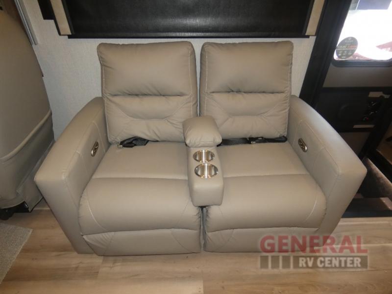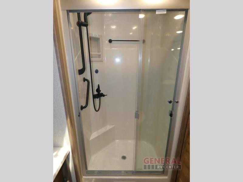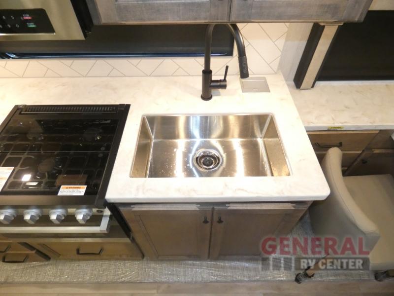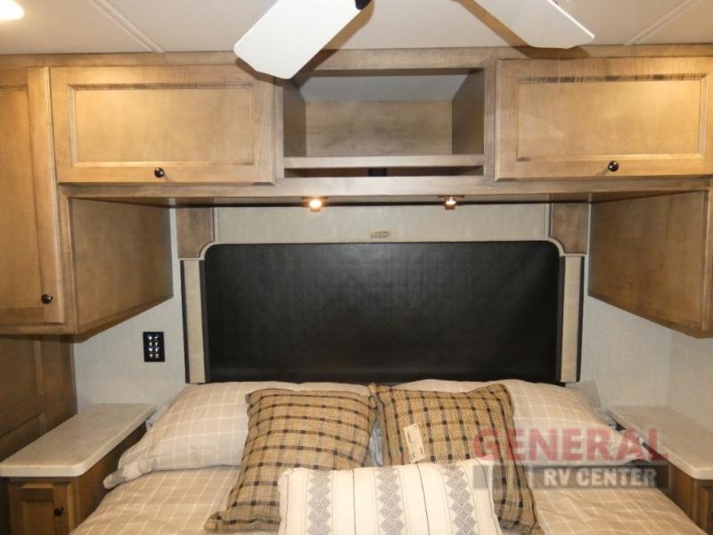You'll love how easy it will be to maneuver this coach since it comes in at only 32-feet in length! The full-wall slide will open up your space so you can cook on the three burner range and dine at the booth dinette-sleeper. There is also a residential refrigerator and a pantry for food storage plus a bedroom wardrobe with drawers within the slide to keep your thing tidy. Once dinner is cleaned up, you can relax on the theater seating across from the wall mounted TV, or head outdoors to visit under the Girard power awning with LED lights. You're sure to get a great night's rest on the king bed, while your guests sleep on the booth dinette-sleeper. And if you're needing additional sleeping space, just choose the optional drop-down cab bunk!