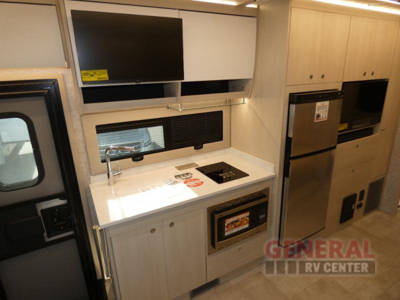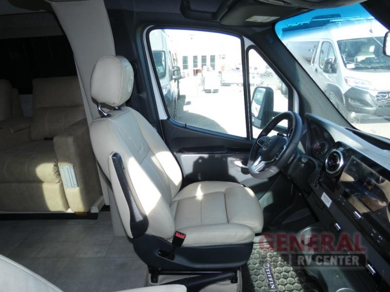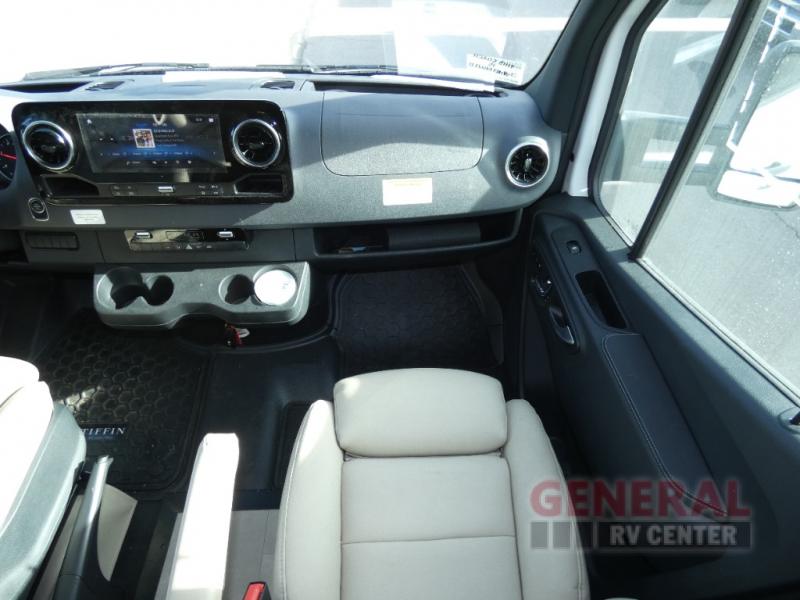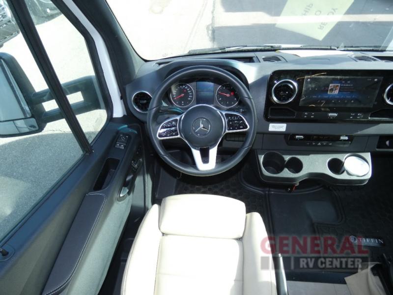 With any Wayfarer Class C diesel coach by Tiffin Motorhomes you will enjoy luxury features both inside and out. There are one-piece molded gel-coat fiberglass front and rear caps plus full-body paint and two layers of clear coat for added protection. The Mercedes-Benz 3500XD dual wheel cutaway chassis provides a strong foundation, and the 2.0L V4 turbo diesel high output 208 HP diesel engine with 332 lb-ft torque will keep you going adventure after adventure! You will love the drive just as much as the destination with adjustable captain's seats that are also heated, intelligent navigation, and a Mercedes-Benz MBUX multimedia system with a 10.25" touchscreen. Wherever you decide to roam, you will be met with interior comforts that include handcrafted overhead cabinetry, solar and privacy shades, solid surface galley countertops and task lighting, and a wardrobe in the bedroom to keep your space tidy.