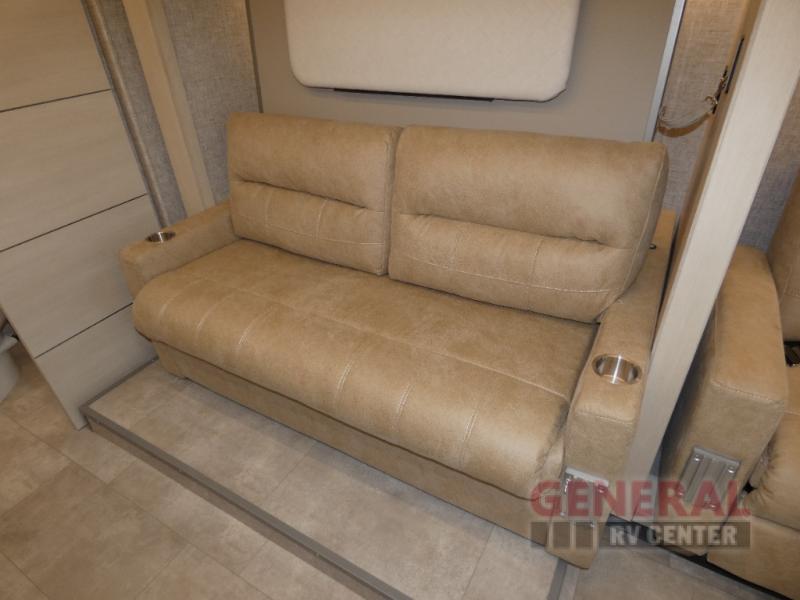 Travel with your favorite person, family, or some friends to see nature along the highways, up close and where ever the road takes you! You will find sleeping space for five with the bunk over the cab, the booth dinette-sleeper, and the versatile queen-size Murphy bed and sofa combo! The rear full bathroom gives you privacy, and the galley kitchen lets you make meals on the two burner cooktop and convection microwave oven. You might like to add a few options to customize your coach such as optional theater seating, or a tri-fold sofa in place of the dinette, a central vacuum system, an overhead entertainment center in place of the bunk, and/or an exterior TV to enjoy under the awning.