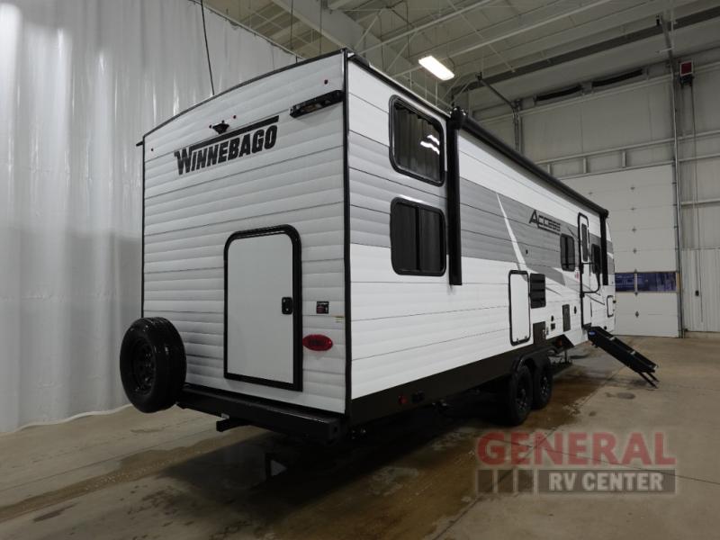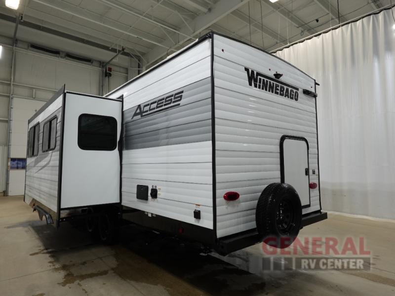 With any Winnebago Access travel trailer you will find thoughtful, clean, and contemporary designs filled with premium features that all have come to expect on any Winnebago towable. You will appreciate the stylish exterior aerodynamic front profile and durable sidewall metal for greater aerodynamics plus strength and durability. With a fully enclosed underbelly that comes with radiant foil insulation, you can easily extend your camping season into the colder months without worrying about having frozen pipes. On the inside, a foot flush toilet, roller shades, abundant storage, and spacious living areas making every camping trip more enjoyable. Make your choice today and Access your next adventure!