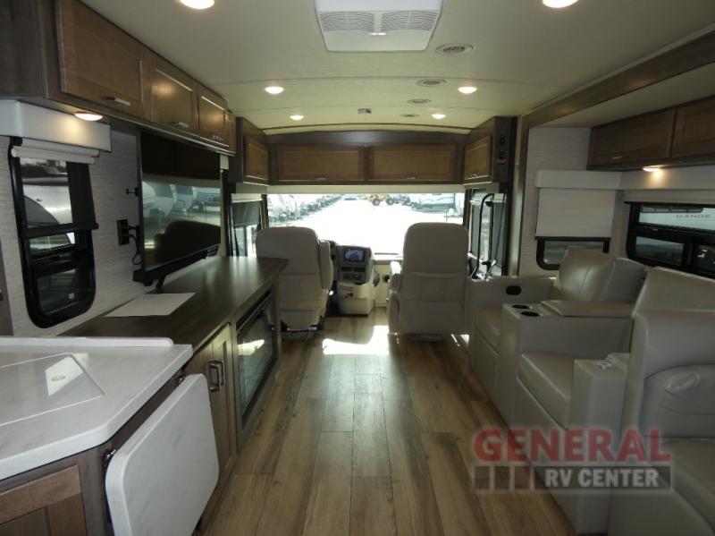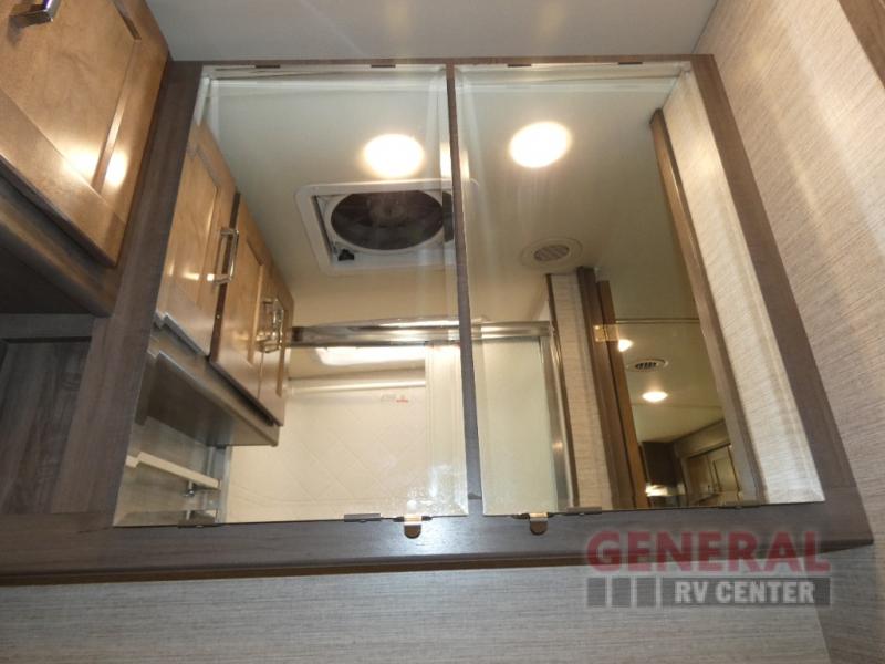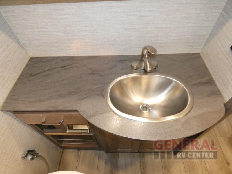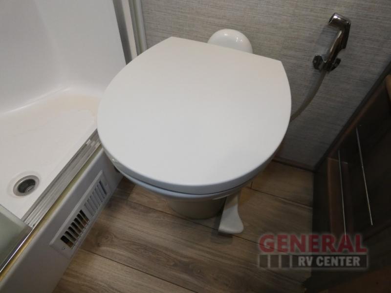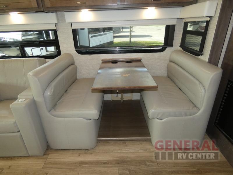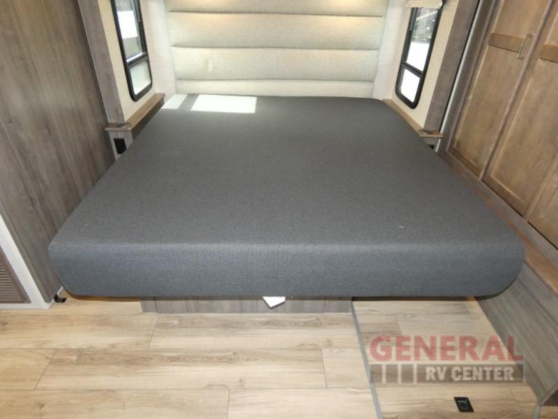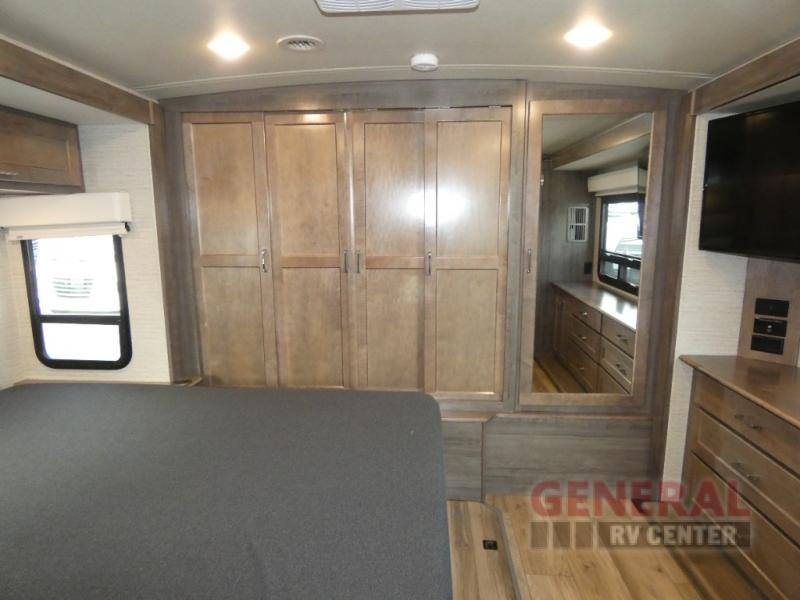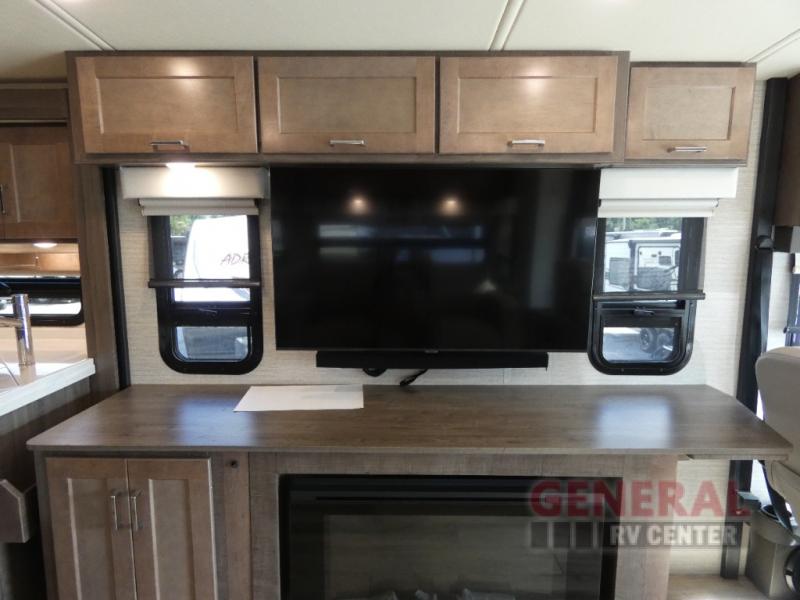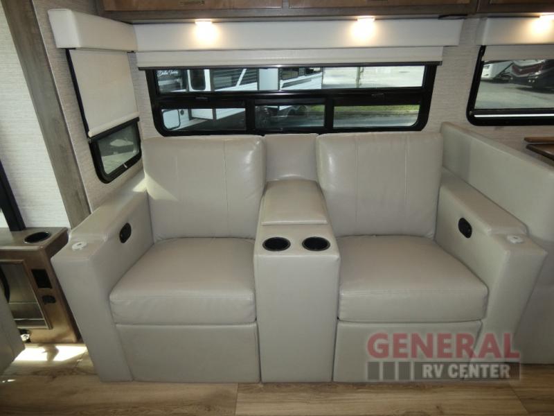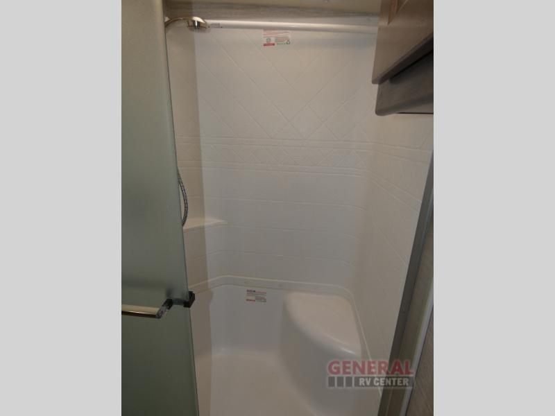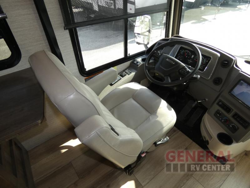 You can have many adventures of all sorts with this Forza Class A diesel motorhome! There is so much interior living space because of the three large slides, and there is also great relaxation found with the swivel/reclining cab seats, the BenchMark dinette, and the TrueComfort+ sofa. The private bedroom has quite a bit of storage space with its chest of drawers and full-width wardrobe, and there is also a 40" HDTV and queen-size bed with nightstands on either side. The kitchen is going to be amazingly helpful with its residential refrigerator, convection microwave, flip-up countertop extension, and pantry, and you will also love having a full bathroom with a 38" x 30" shower with seat, a textured glass shower door, and a bath skylight. You can also choose the optional Studio Loft drop-down bed on this model if you are needing more sleeping space!