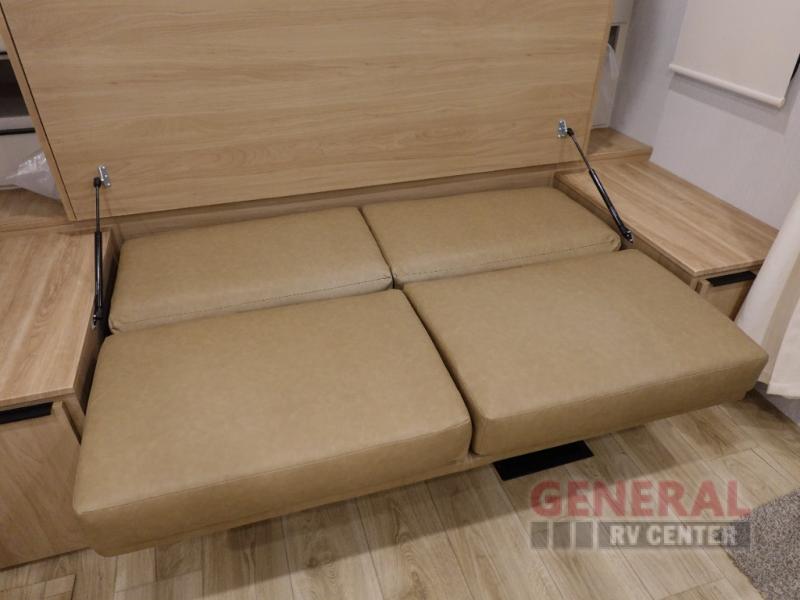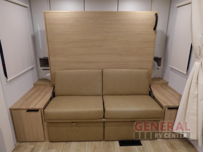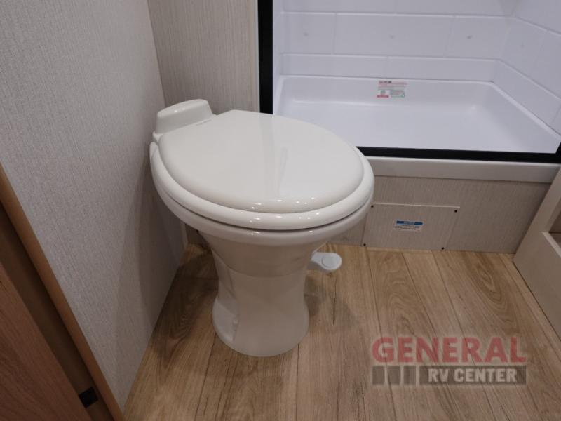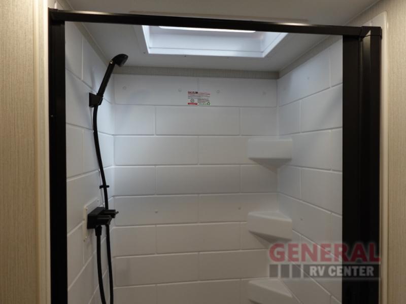If you enjoy camping with a larger group, this travel trailer with double-size bunks is sure to be a fit! There is also a U-shaped dinette within a slide for more sleeping space, and you'll find the front Olympic Queen Murphy bed to be very versatile. A recessed three burner cooktop with an oven will let you make meals each day, and the 10.6 cu. ft. 12V refrigerator will keep your cold items fresh. There is also a countertop extension, giving you more space to prep meals. The full bath includes a power vent fan and a shower skylight that will give you additional lighting and extra head room as you get ready each day!