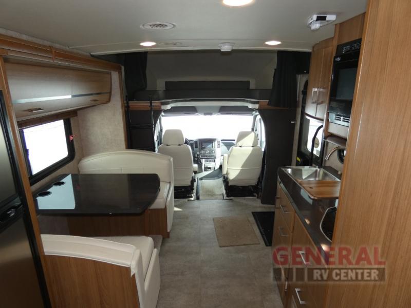 Your family will enjoy seeing the views riding down the road in this View Class C diesel motorhome. The kids can play games at the U-shaped dinette that has three seatbelts, and once at your destination, the dinette footrests may come in handy. The driver and passenger will enjoy the heated, power cab seats that can swivel for more seating. The exterior storage holds larger items, and the above-bed Anything Keeper storage stows things away such as your cellphone. You might like to add the theater seating option with swivel tables in place of the U-shaped dinette if you don't need that extra sleeping space. The cook will appreciate the kitchen appliances to make meals, and the bathroom has the bath sink just outside the door so two people can freshen up at once!