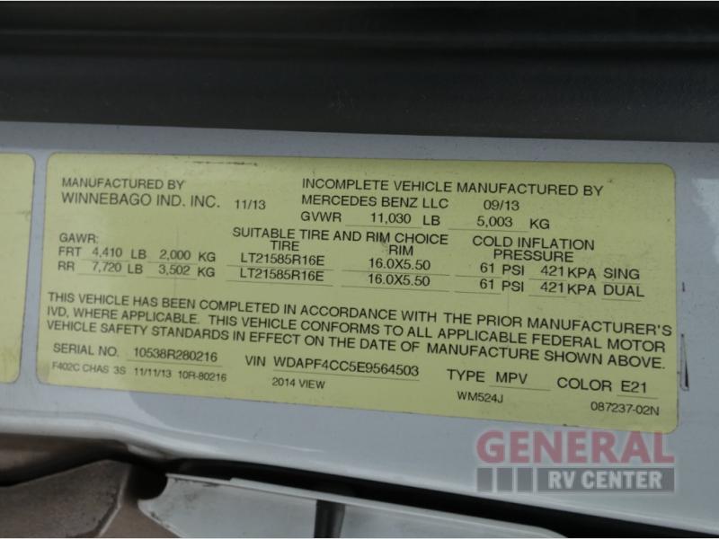 With each View Class C diesel motorhome by Winnebago, you can extend your trips off grid with the industry-leading holding tanks, the two 100W solar panels, two deep-cycle Group 31 RV batteries, 2,000W inverter, plus the 3800W RVMP Flex Power generator. The View is built on a Mercedes-Benz Sprinter chassis with advanced safety features giving you peace of mind, and the MBUX touchscreen infotainment system has intelligent voice control, navigation, a Wi-Fi hotspot, and more! The interior offers luxury space and simple solutions for storage, plus it also has vinyl flooring and laminate countertops for easy clean-up.